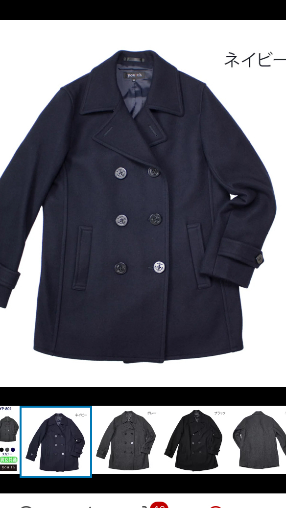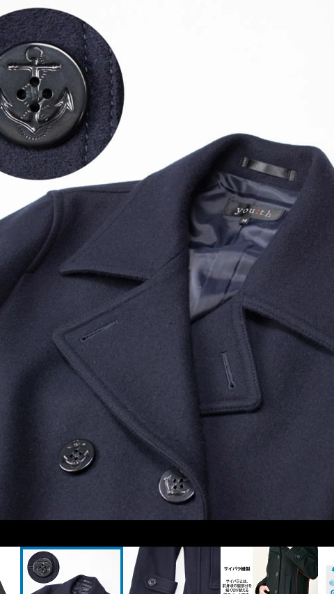 ピーコート スクールコート 女子 学生 男女兼用 撥水加工生地 サイバラ縫製 学生服 YP-801 youth(ユース)