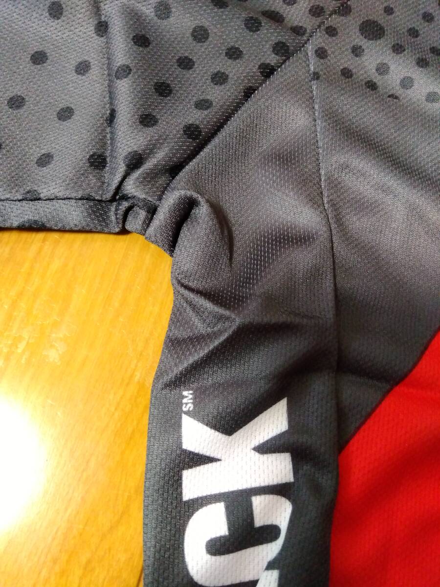 平置き採寸結果:身幅脇下左右50センチ、前丈襟含む58センチ、後ろ丈襟含む67センチです。