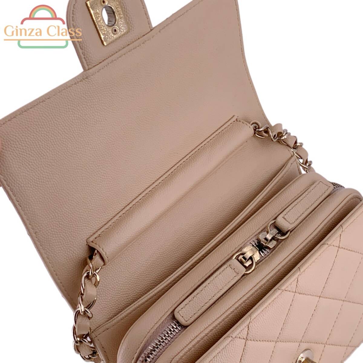 【管理番号】100437 【モデル】シャネル ミニ マトラッセ チェーンショルダーバッグ 【状態】USED-AB 【サイズ】約W18×H13×D6.5cm ショルダーの長さ:120cm 【素材】キャビアスキン 【カラー】ベージュ/ゴールド金具 【シリアル】ランダム番台 【付属品】箱(ダメージあり)、保存袋、冊子 ※金具にメッキハゲ、角擦れ、本体汚れや擦れ傷、内部汚れがあります。詳しくは画像をご参照ください。 | |