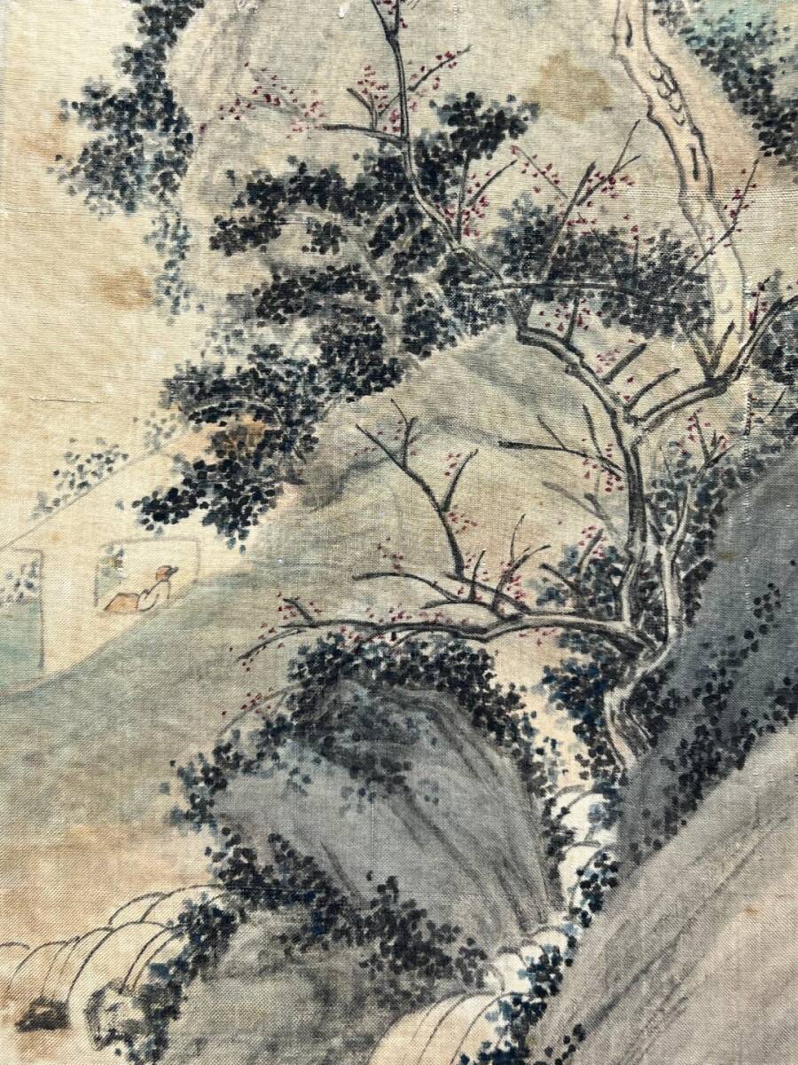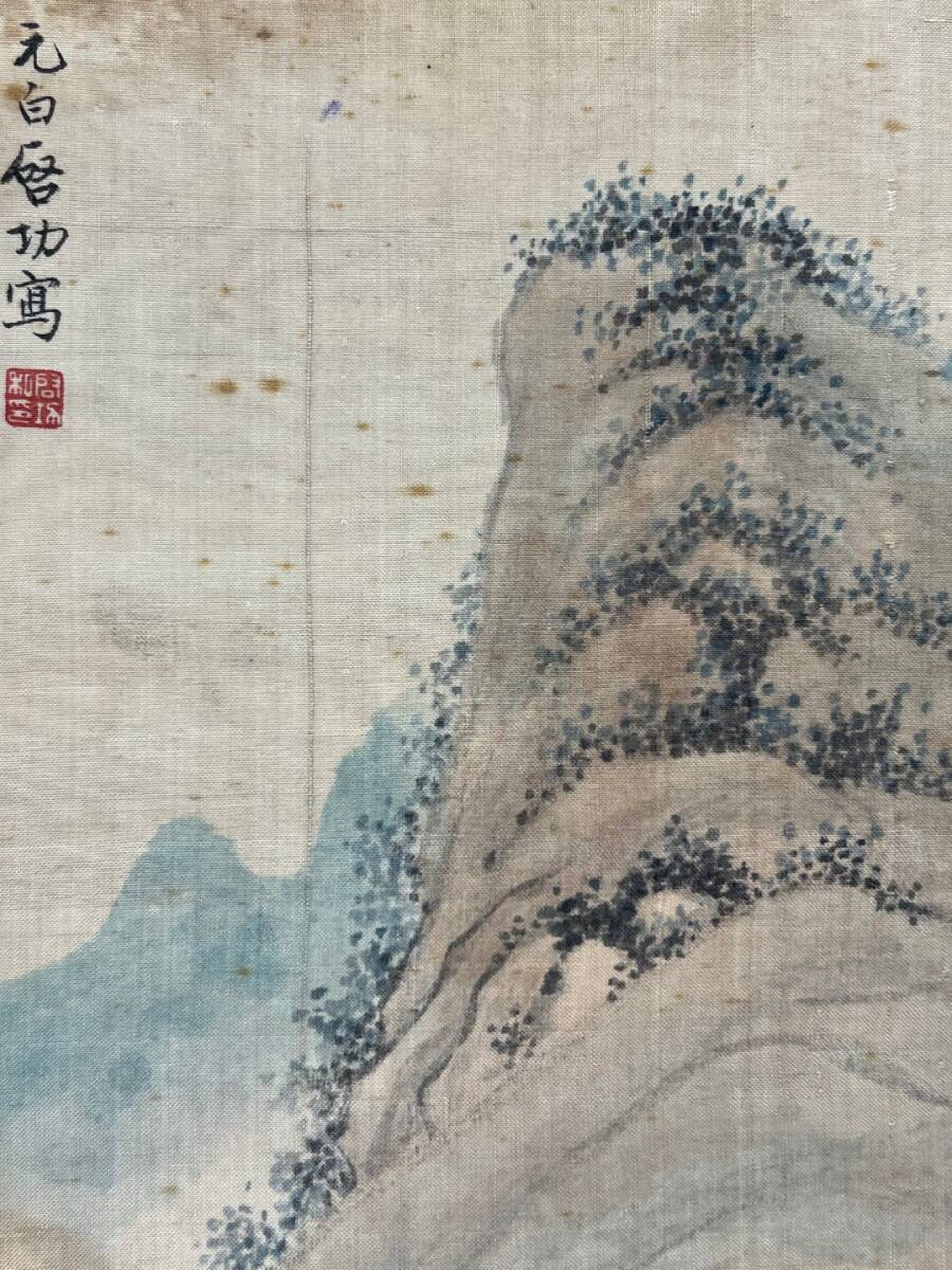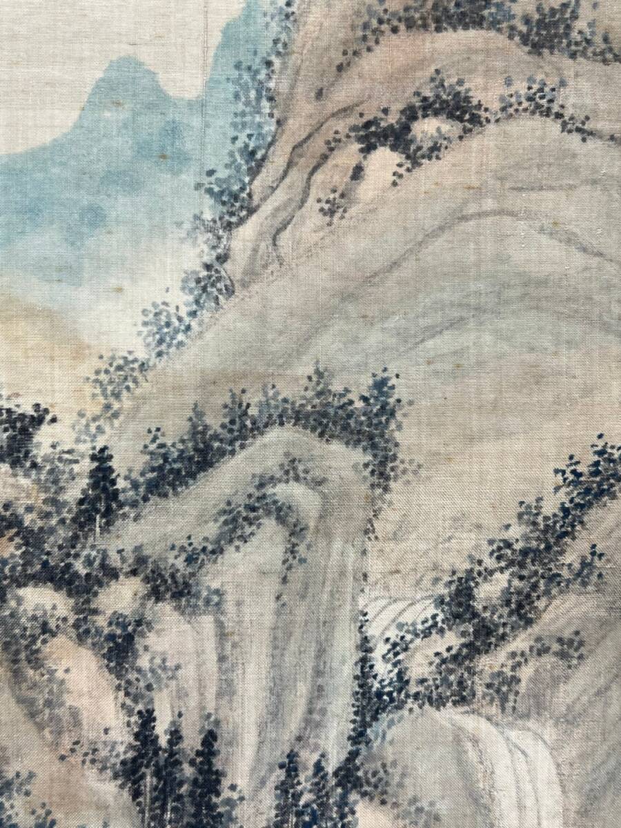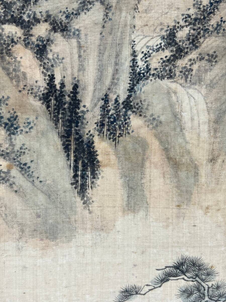中国書画 典蔵掛け軸 【山水&啓功】書道巻物 真筆逸品 古美術品 画心91×31cm 絹本 LOT-c372 | |||