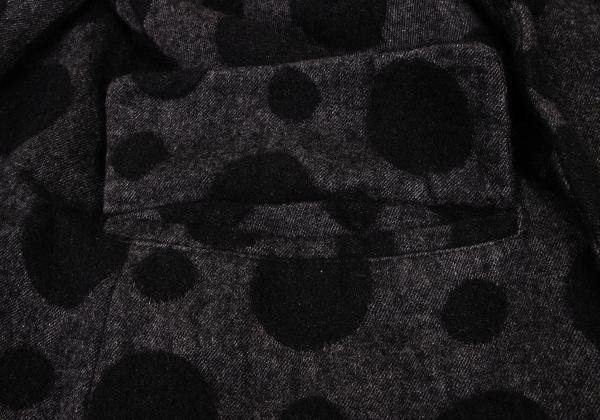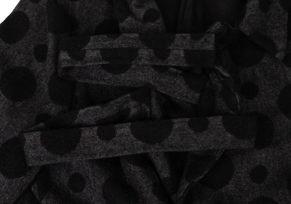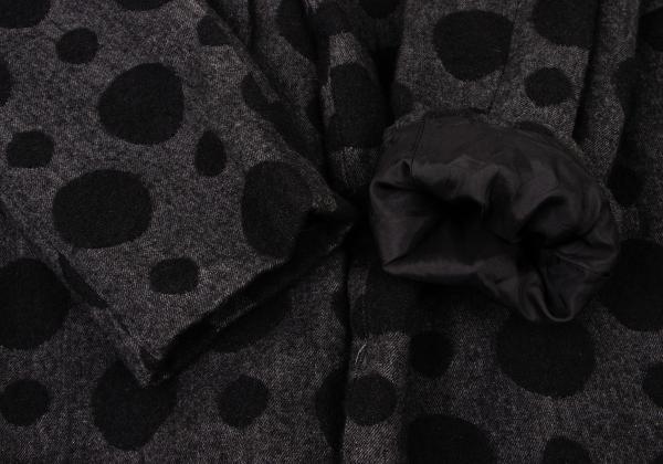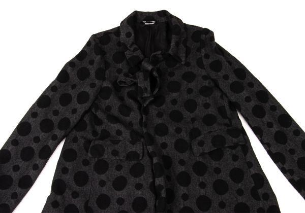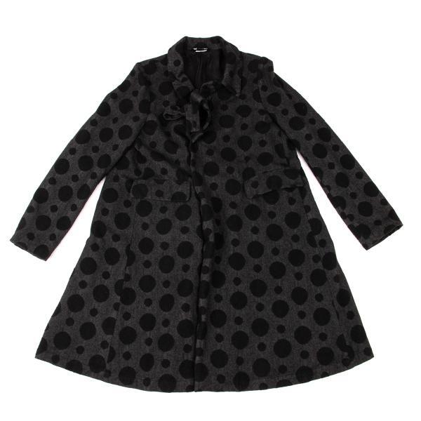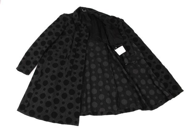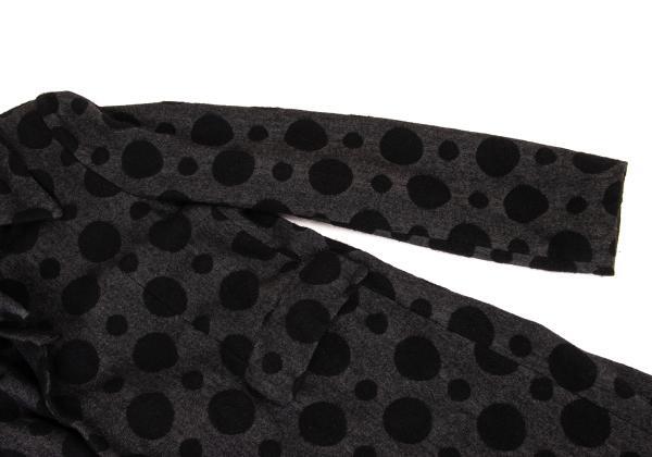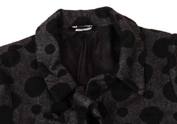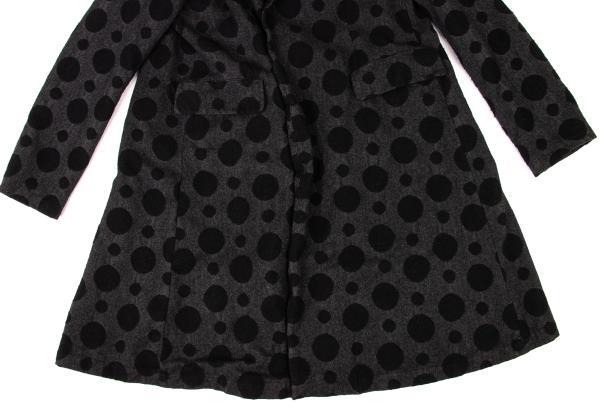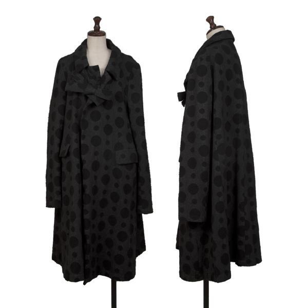 | ブラックコムデギャルソンBLACK COMME des GARCONS ウール混フロントコード留めドットジャガードデザインコート チャコールグレー黒L |
