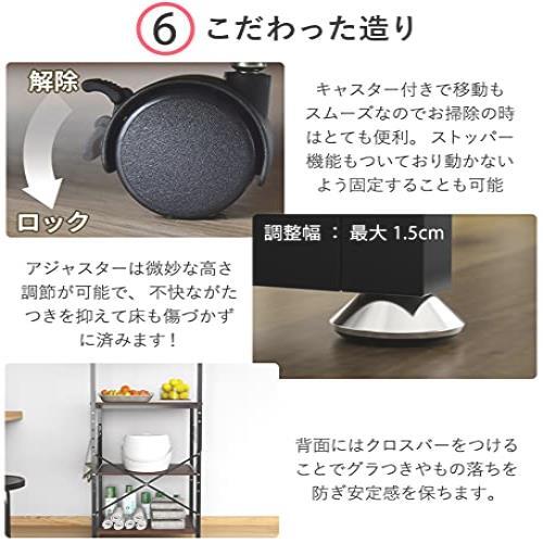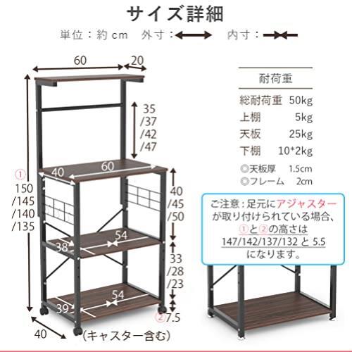 | ブランド:DE WEL 【商品仕様】幅60×奥行40×高さ150/145/140/135cm(キャスター含む)【総耐荷重:50kg】上棚:5kg天板25kg下棚:10*2kg【材質】パーチクルボード 板厚約1.5cm 天板は最強グレードのメラミンで仕上げています。【保障について】環境保護レベルE0、このパソコンデスクはSGS認証を取得し、安心してご使用いただけます。 【広々とした収納スペース&高さが変えられる可動棚】 収納力抜群の全4段の棚板!幅約600mmの省スペース設計で天板がすごく丈夫で電子レンジなどのキッチン家電の収納にぴったり、他の棚板で散らかりがちな調味料や食品ストックや食器などをまとめて収納でき、使いやすい快適なキッチンを実現します。開放感を与える視界を遮らないフレームデザイン。自分の好みと収納物の高さによって上棚の位置を自由に調節できます(高さ150/145/140/135cm)。中棚の位置も三段階に調節できます(高さ33/28/23cm)。 【360°自由回転キャスター&アジャスター&5個Sフック付き】 360°自由に回転するキャスター付きで、使い勝手が良い! キッチンラックの足元は360°回転、四輪のプラスチックキャスターを搭載しています。前の二つのキャスターはストッパーが付き、ロックした後、簡単に移動したりしなくて安全に使えます。 アジャスターも使用可能! アジャスターを細かく調整して、安定感を高められます。特定の状況に応じて、キャスターまたはアジャスターの取り付けを選択できます。 5個Sフックも付き。 移動可能なフックが5個付いていますので、ボディタオルや、洗顔ブラシ、キッチンツールなど小物収納に大変便利です。 【使い勝手のいいスライドレール&汚れに強い素材】 気のキッチレンジ台定番は高い強度の引きスライドレースを装備していて開放式の2段目の棚板はしっかり引き出せるのでフタ付きのポットや炊飯器などは使いやすく快適です。使いたい時はサッと引き出せるのでとても便利です。 棚板にはメラミン樹脂加工を、フレームには粉体塗装加工を施し、水や汚れに強い商品に差し上げました。汚れにくく、水に濡れてもサッと拭き取ることができ、お手入れも簡単です。また、これらの加工は耐食性にも優れており、腐食しにくい仕上がりに、ご自宅で長く愛用していただける商品となっております。 【1年間保障提供】弊店のキッチン棚はお買い上げ日より、1年間の安心保障を提供いたします。お手元に届く際に、もし何か不具合があったら、お客様相談室(メール)までご連絡下さい。7日以内返品・交換サポート付き。説明書に電話番号やメールアドレスがあります。【組立について】説明書に組立ビデオが添付しております。ぜひご参考ください。組み立て目安:20-80分 | |||