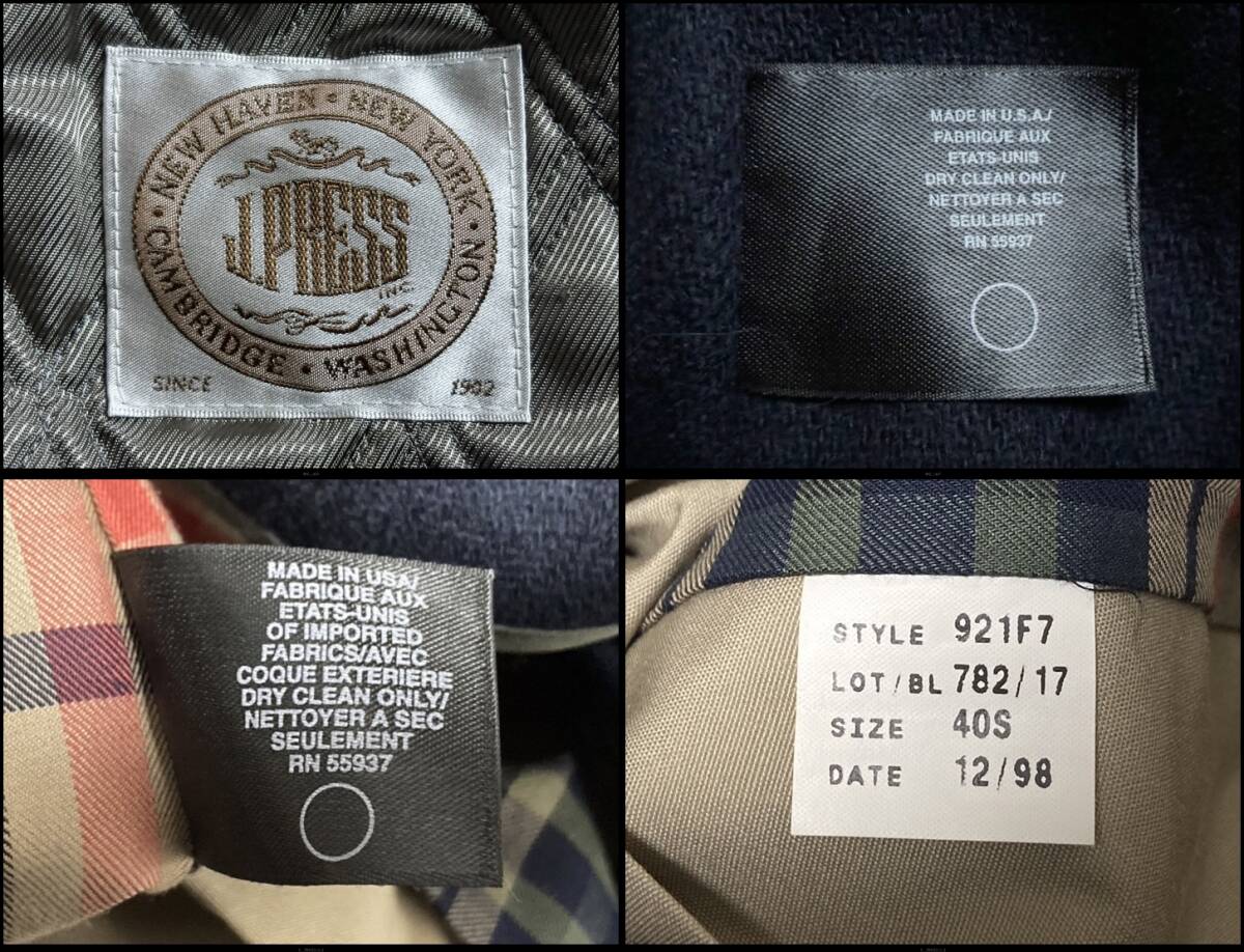 美品 USA製 J.PRESS ジェイプレス コート バルマカン バルマカーン ロング ベージュ 921F7  782/17 40S 12/98 △1193 になります。