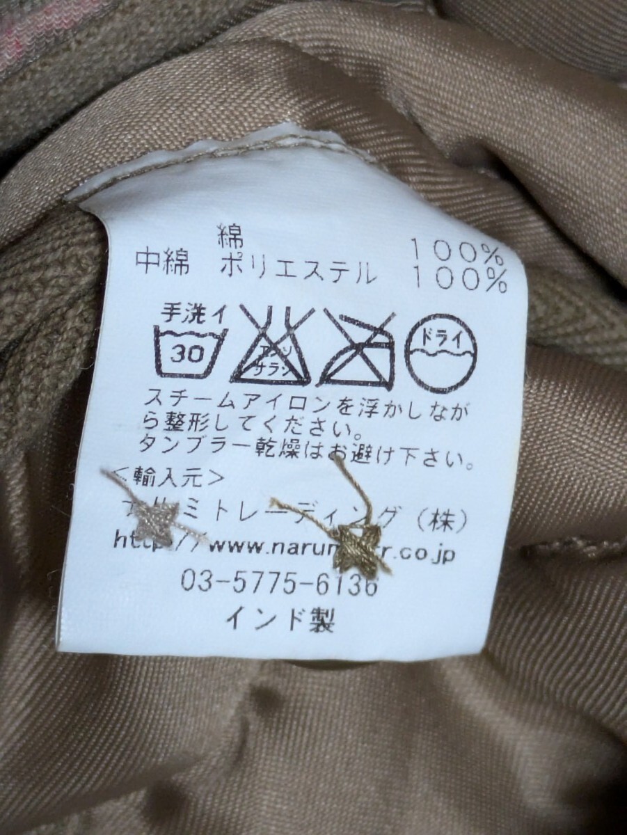 数年前に3万円程で購入、2回程着用、クリーニング後自宅保管 綿100% 中綿ポリエステル100%