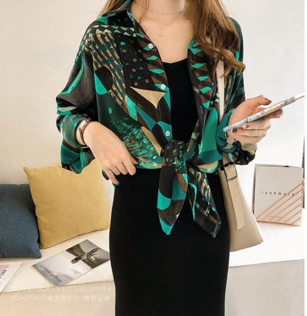 ボタン付き 長袖ブラウス 春 夏 秋 冬 韓国ファッション