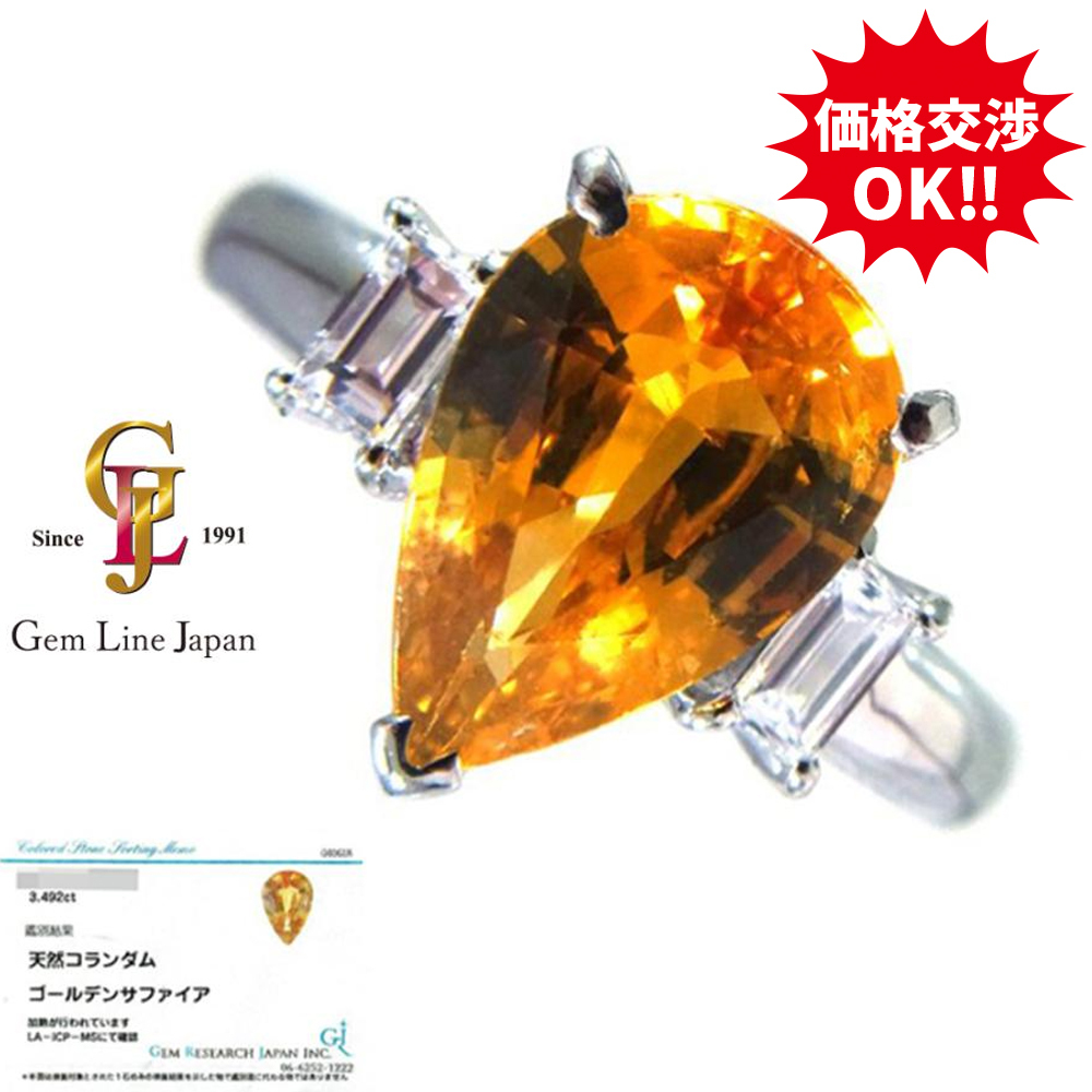 商品名 | GRJソーティング付 大粒ゴールデンサファイア 3.492ct ダイヤモンド 0.30ct Pt900 リング | ||