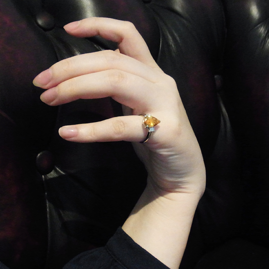 コメント | 大粒の天然ゴールデンサファイアを使用したリングになります。一部微細な傷がございますが、肉眼ではほとんど見えないものなります。当社所見でございますが、脇石のダイヤモンドはF,Gカラー、VSクラスと思われます。 | ||