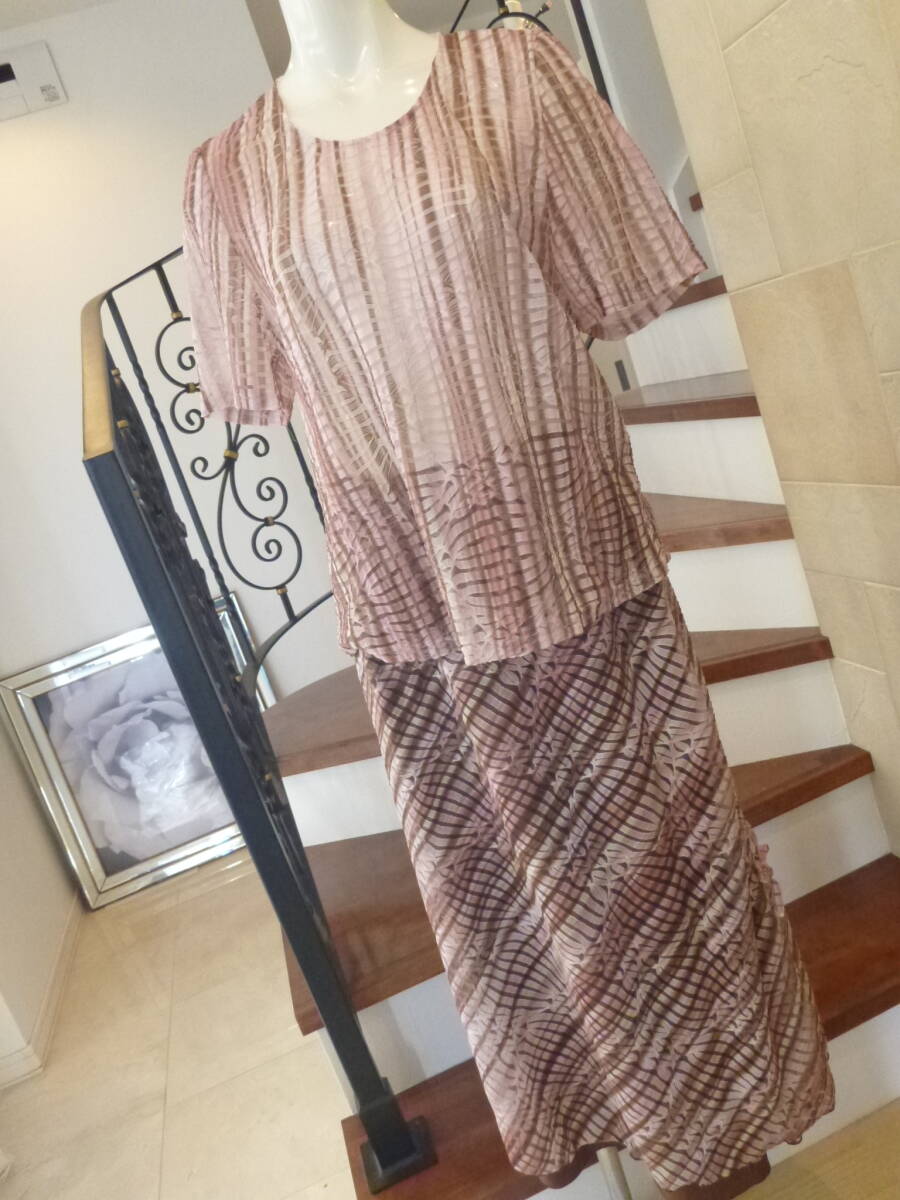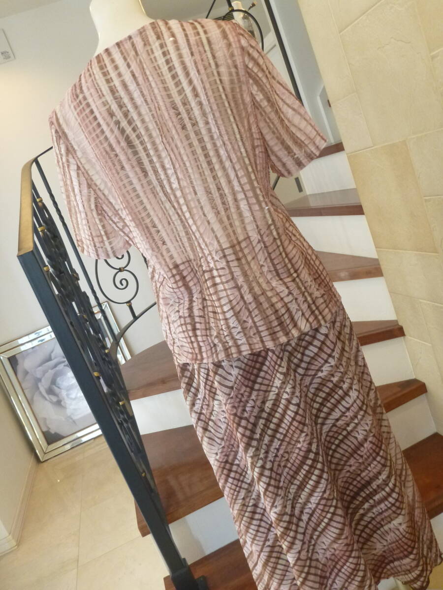 超美品 trenta due トレンタデュエ  ミラノ★ピンク×茶 半袖 上下セットアップ 42 L相当