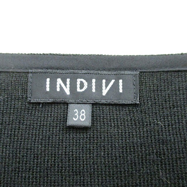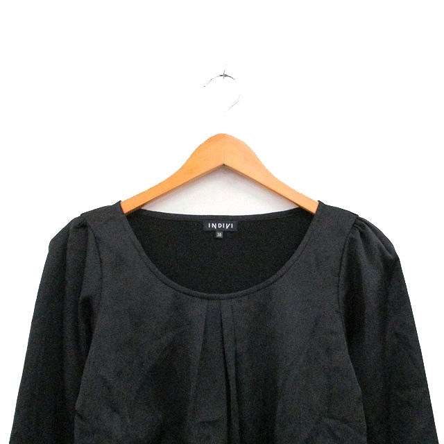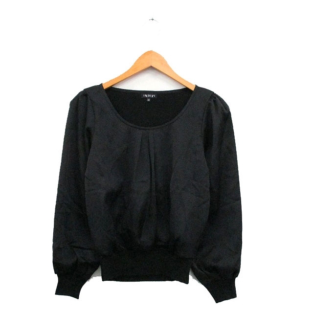 インディヴィ INDIVI カットソー Tシャツ 長袖 ギャザー ウール シンプル 38 ブラック 黒 /KT24 レディース