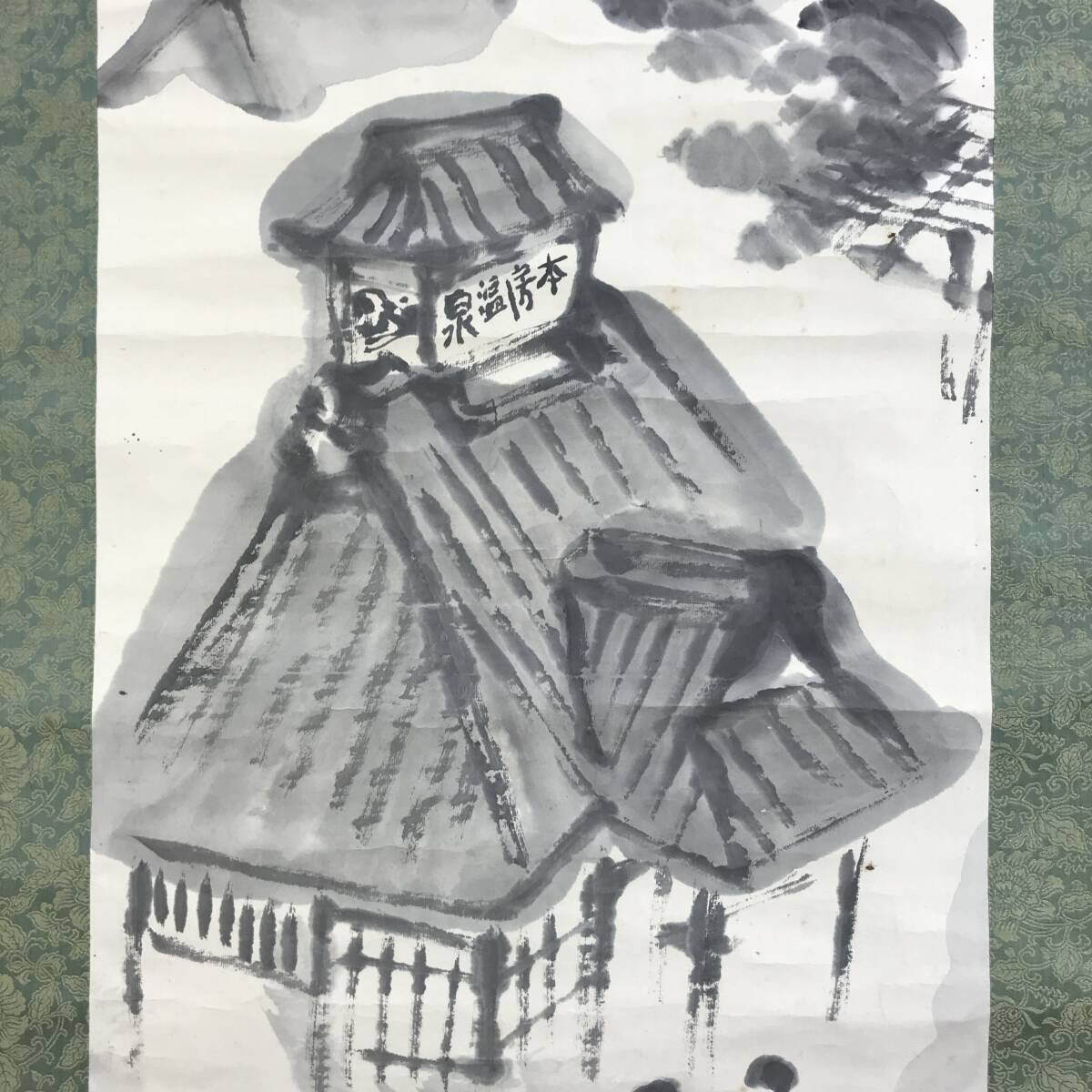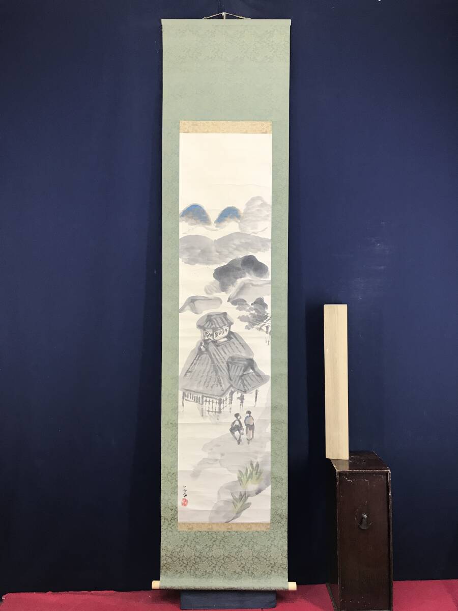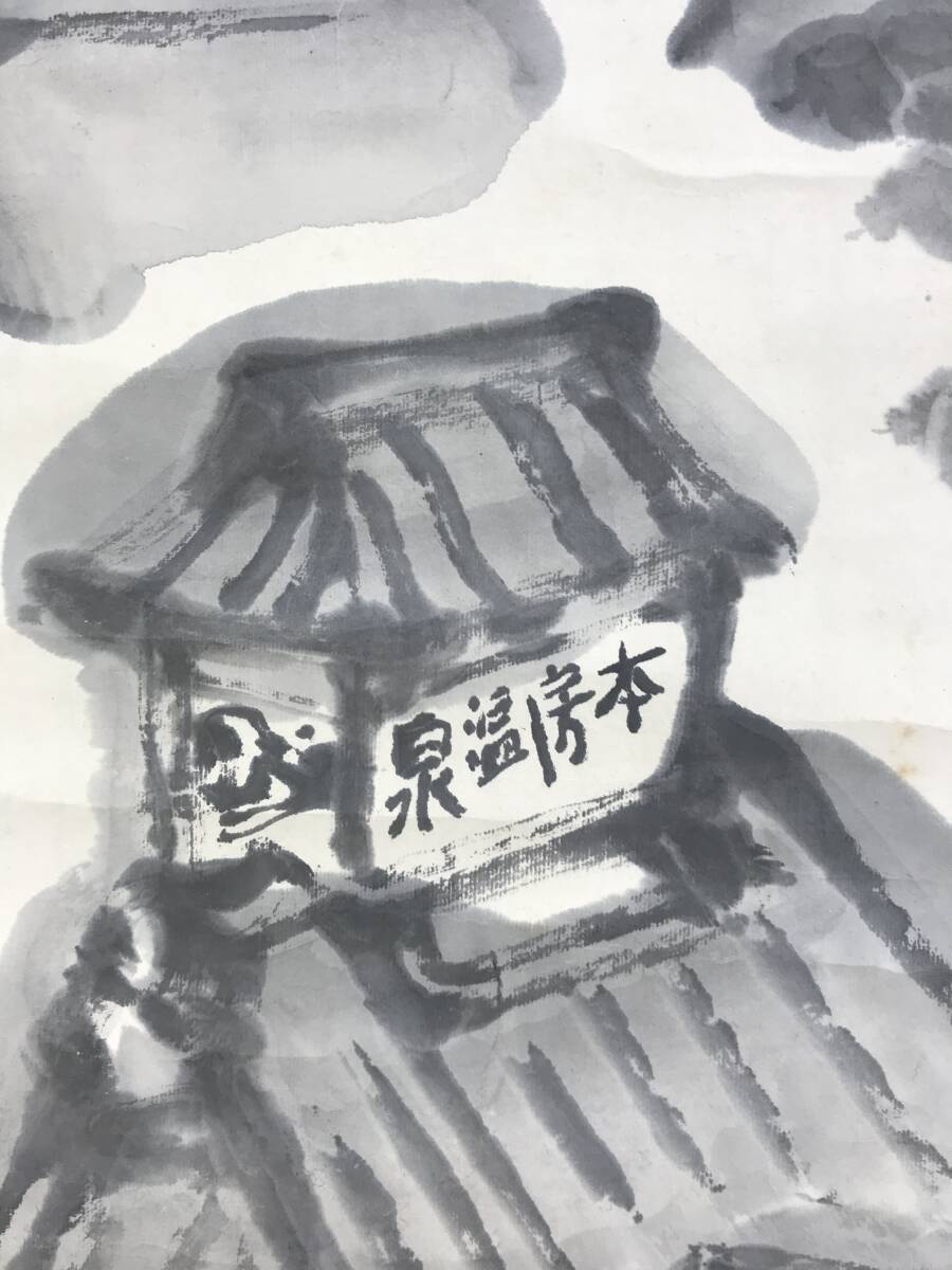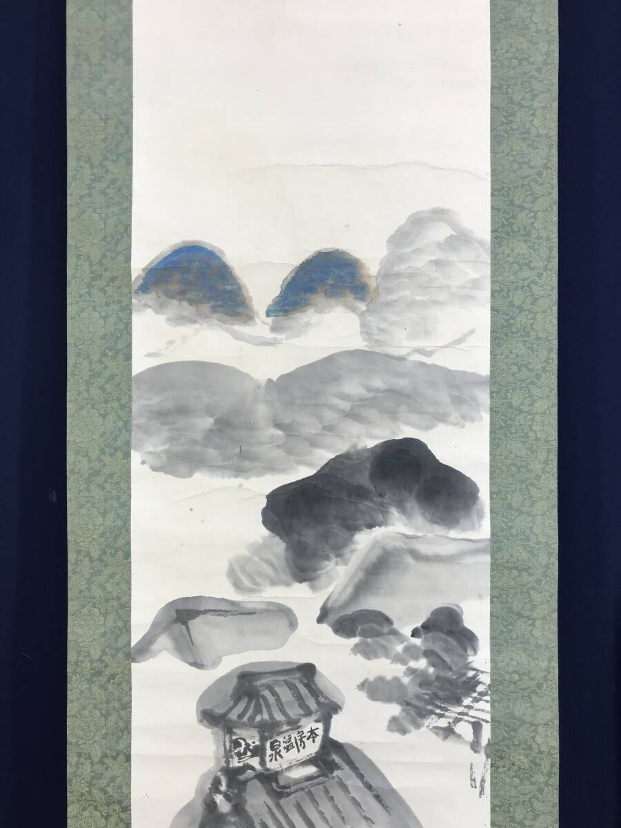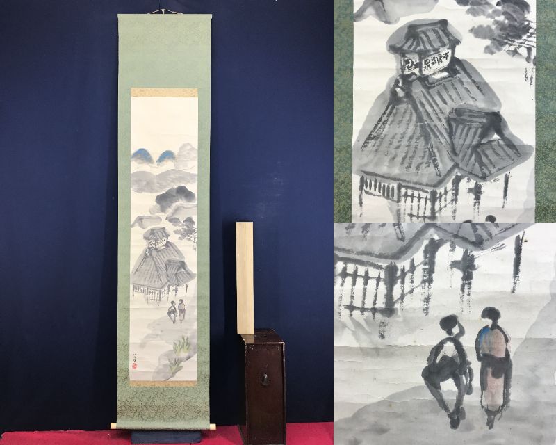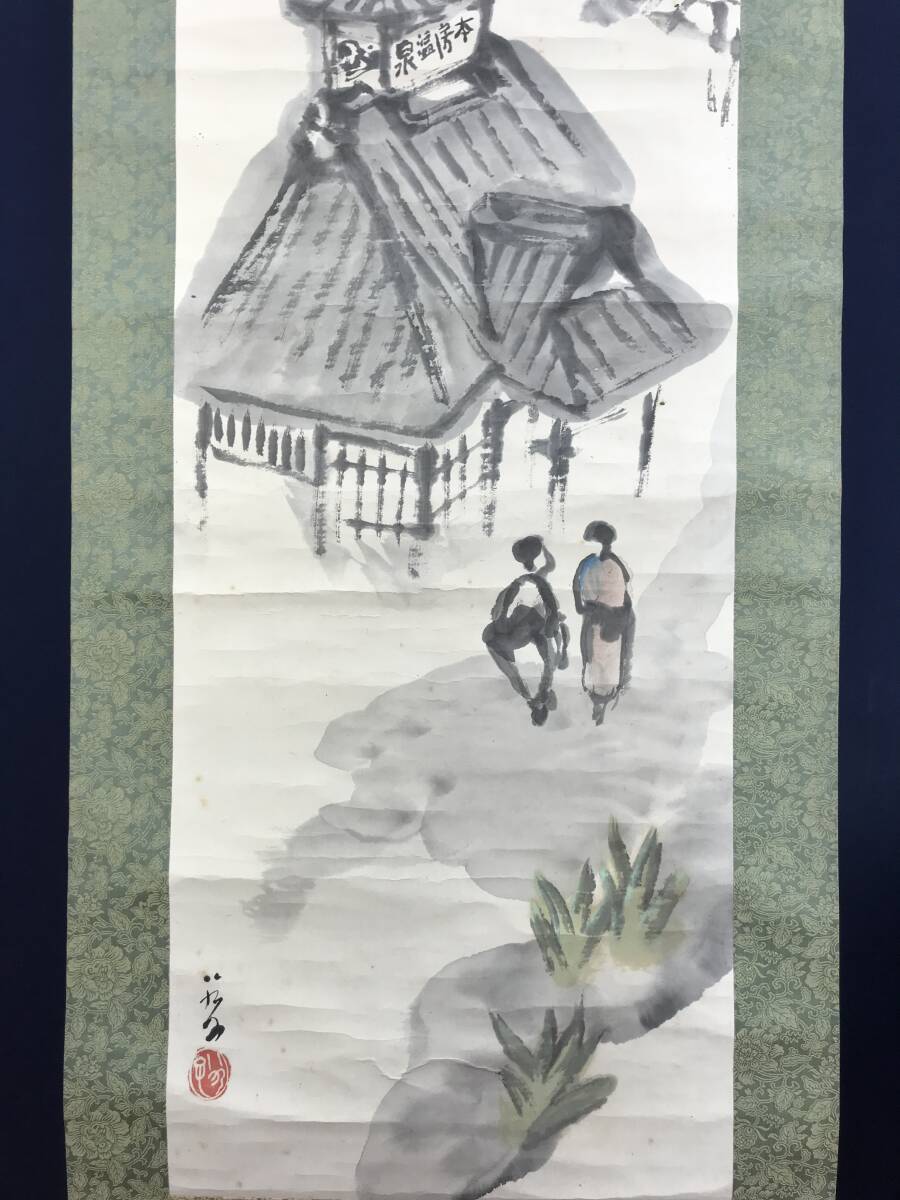 真作/石井柏亭/八九子/本房温泉図/山水図/人物図/掛軸☆宝船☆AH-835