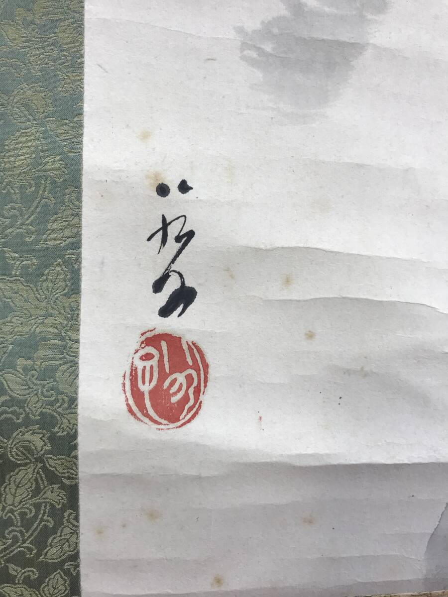 【作品状態】 本紙は紙本肉筆です。本紙は薄汚れ、多少の汚れシミ全体に多数の折れ、巻シワあります。表装は概ね良好です。