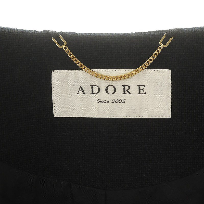 アドーア ADORE ツイード コート ノーカラー ミドル丈 コットン混 38 M 濃紺 /YQ ■OS レディース