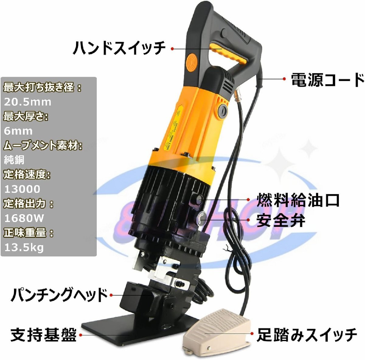 油圧パンチャー 電動 10t 油圧圧着 穴あけ機手動 φ6.5~20.5mm 1680w 6mm厚加工可能 銅板/アルミ板/鋼板/鉄板/山形鋼対応 2~3秒で穴あけ