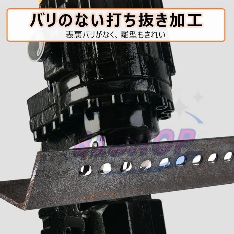 【フットスイッチ/クイックパンチ】:金属製のフットスイッチが付属し、手を解放し、自動リバウンドをアップグレードし、背圧を上げます。 パンチング可能な鉄板/鋼板/銅板/アルミ列/山形鋼/溝形鋼など。各穴をあけるのに約 1 ~ 3 秒かかります。