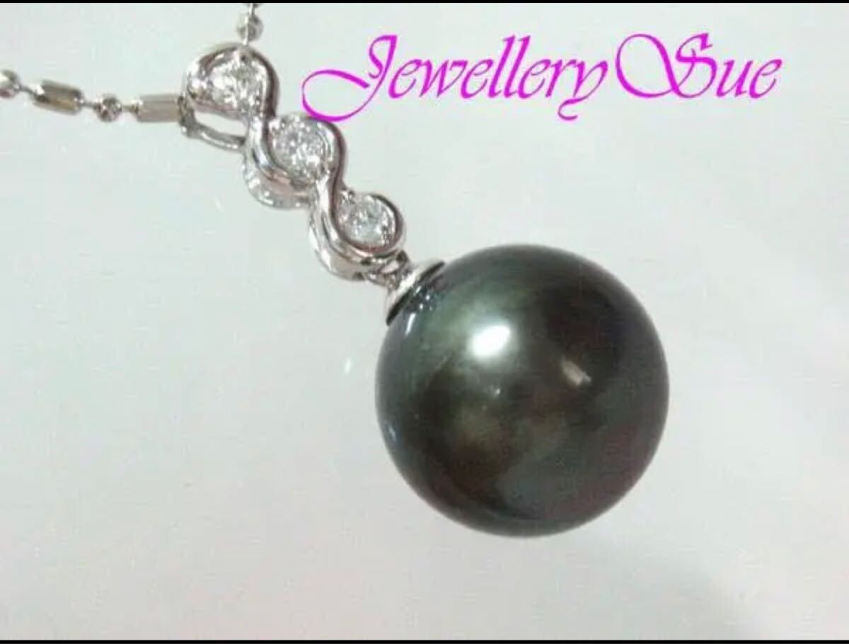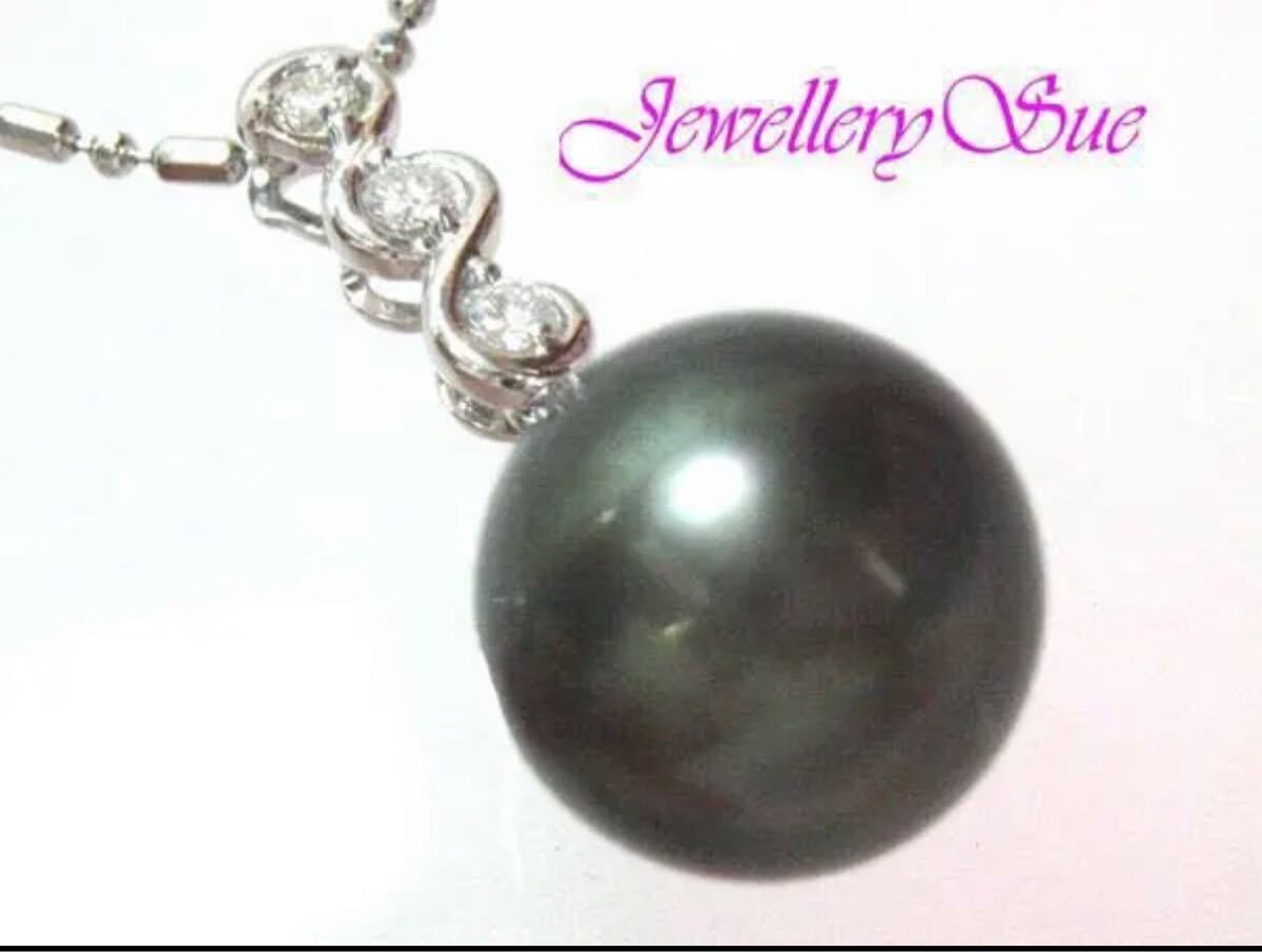 ●商品名:超大粒♪K18ホワイトゴールドタヒチ産ダイヤ入り天然南洋真珠ペンダント