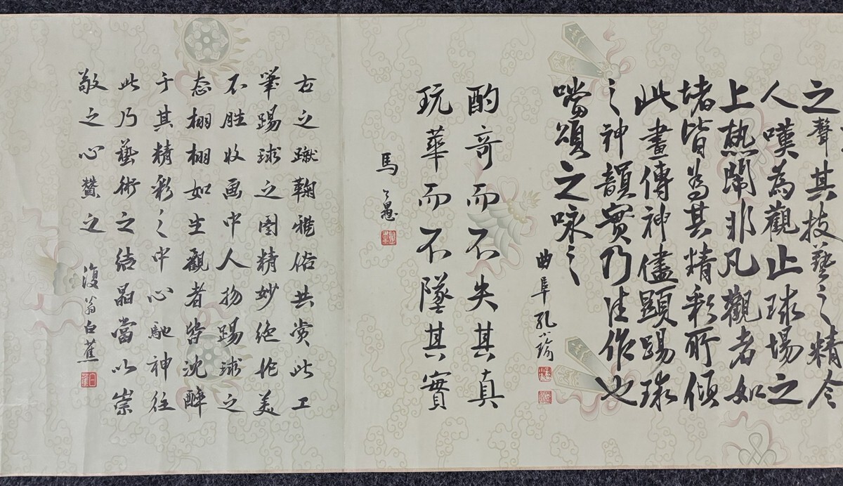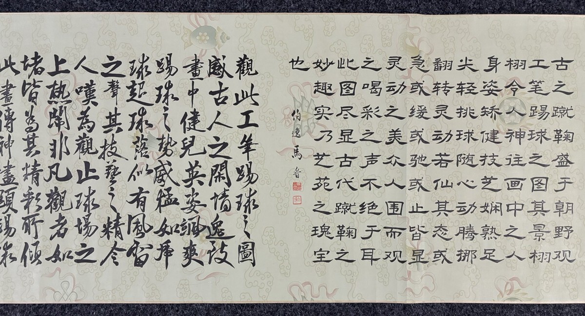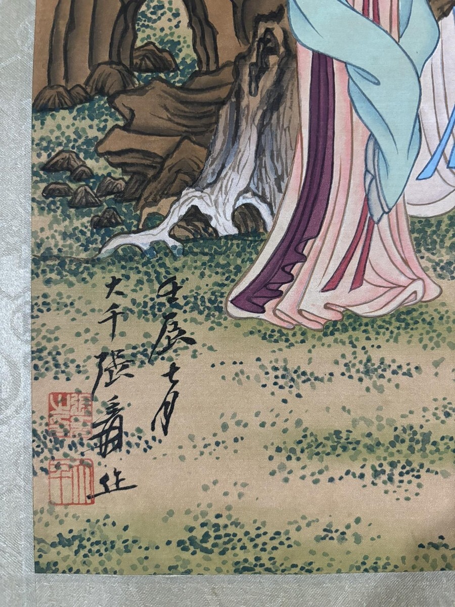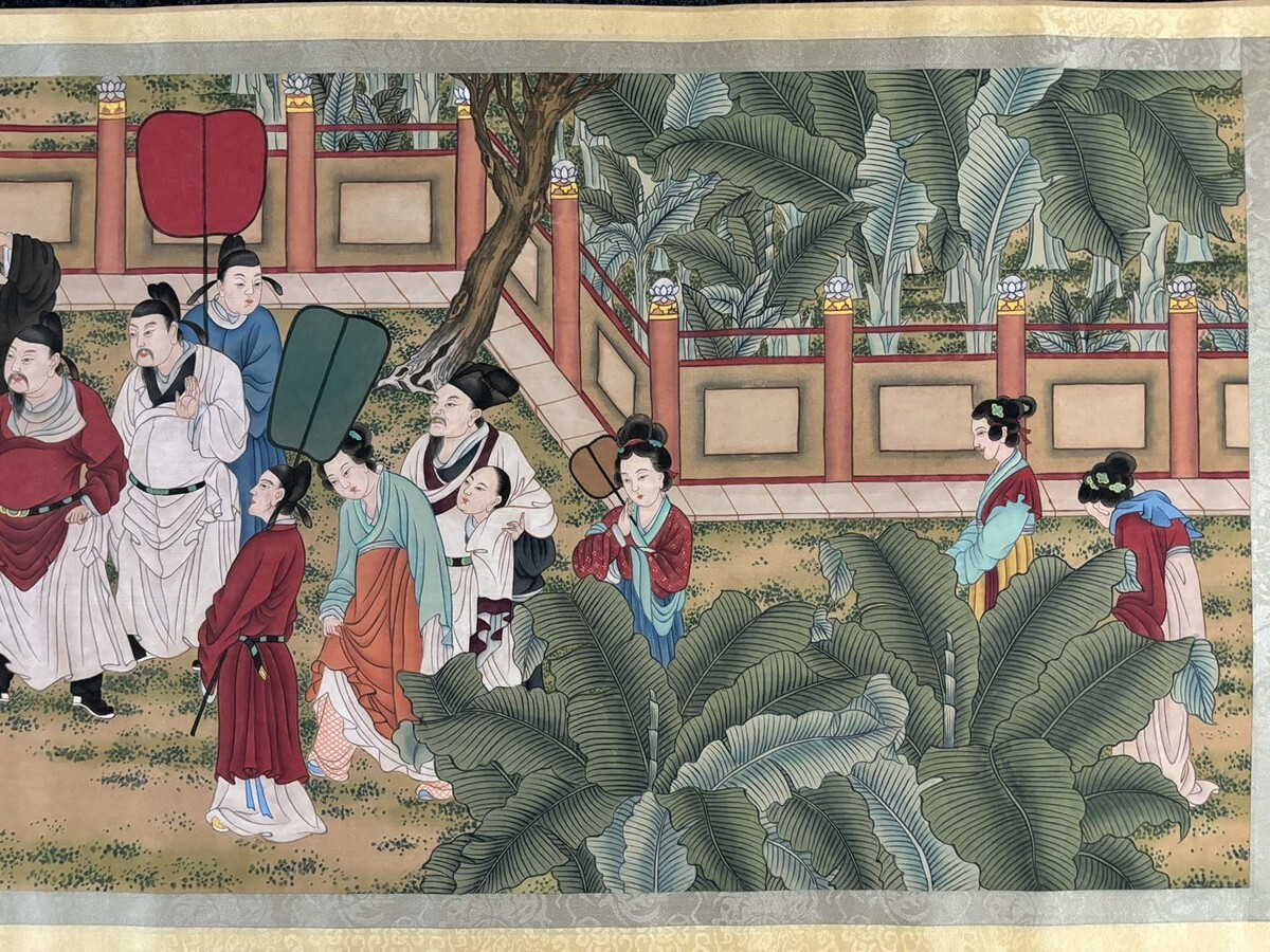 【瓏】「張大千作 蹴鞠図珎品長巻」近代画家 肉筆絹本 掛け軸 書画横物 巻き物 中国書画 古美術 骨董品 蔵出