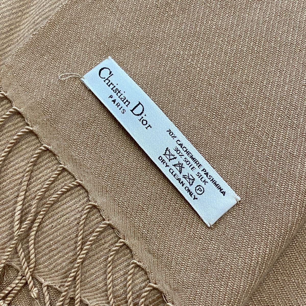 Christian Dior クリスチャンディオール マフラー ストール カシミア混 ベージュ フリンジ no.35