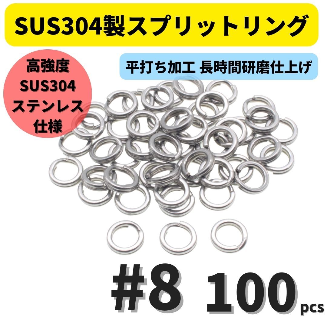 【送料無料】最強素材! SUS304 ステンレス製 強力 平打ち スプリットリング #8 100個セット ソルト対応品 長時間研磨