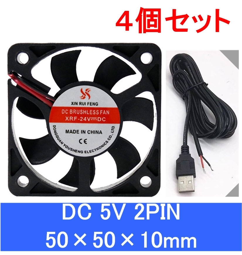 4個セット 小型 クーリングファン V5V 50×50×10mm USBケーブル付き 501005 2ピン(冷却 DC クーラー 空冷 USB 送風 排気 換気 ファン、,