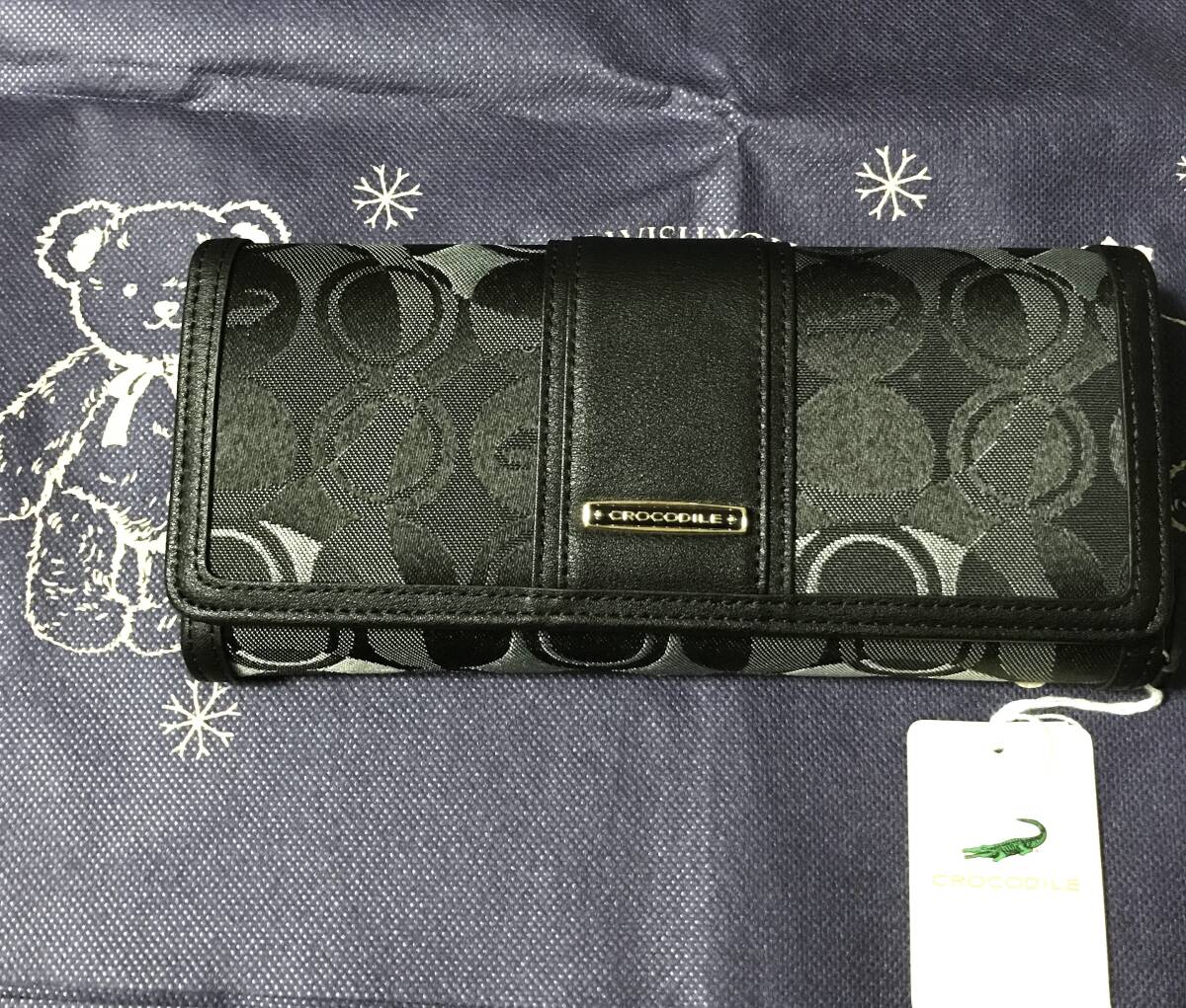 新品 タグ付き クロコダイル 長財布 新財布 黒 迷彩風デザイン 財布