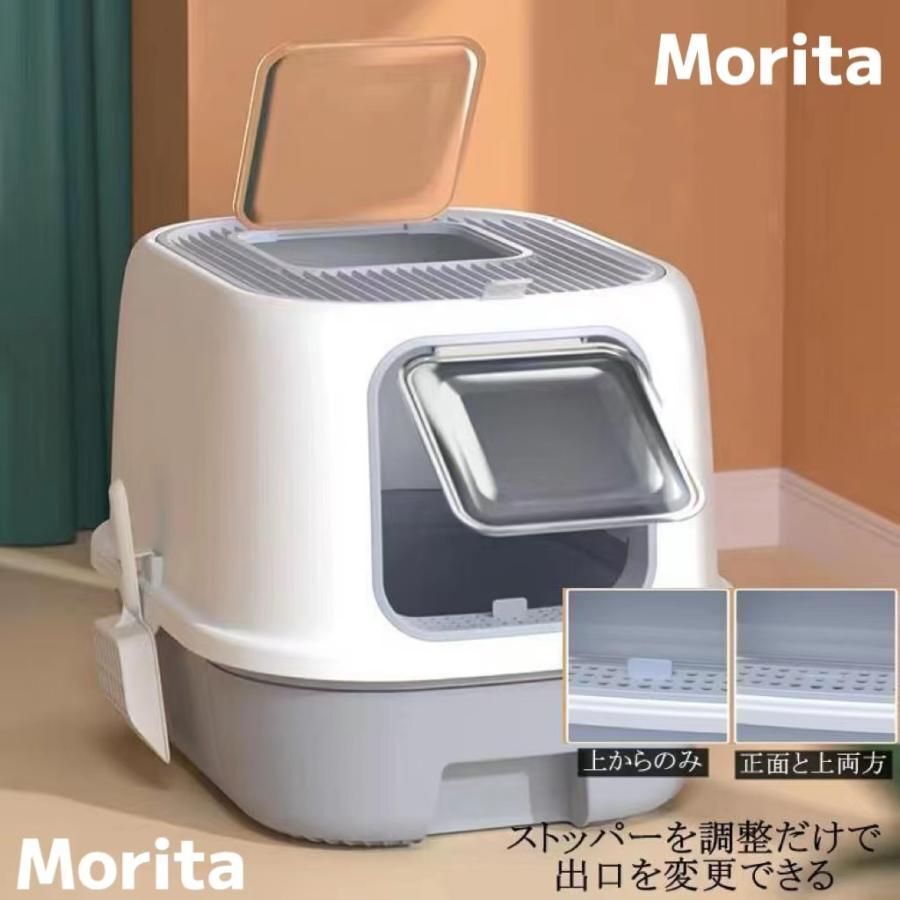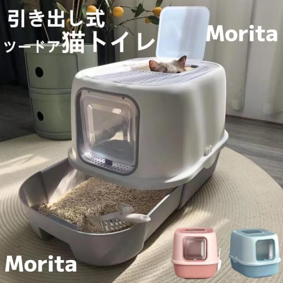 猫トイレ 猫用トイレ本体 大型 ネコトイレ ツードア スコップ付き 大容量 砂の飛び散ら防止 掃除簡単 組み立てしやすい 引き出 40×52×39