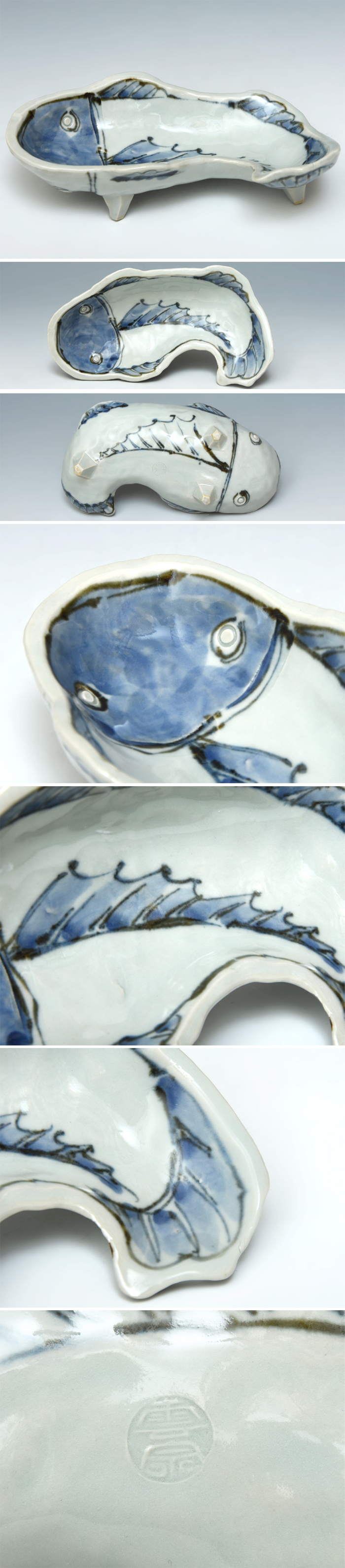 染付貝型海老文向付 3客 染付鯰型向付 1客です。 貝型と鯰型の可愛らしい向付です。 それぞれ料理がよく映えそうな一品です。 鯰型向付に窯傷がございますが、そのほか目立ったダメージはなくコンディションは良好です。 ※撮影の際に生じた写り込みなどがございます。 ご理解の程よろしくお願い致します。 |