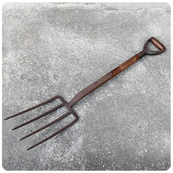 イギリスから直輸入したウッド&ア イアンの古いガーデンフォーク/農具。