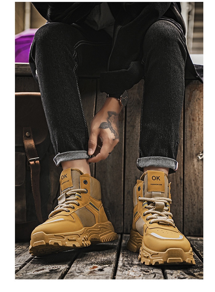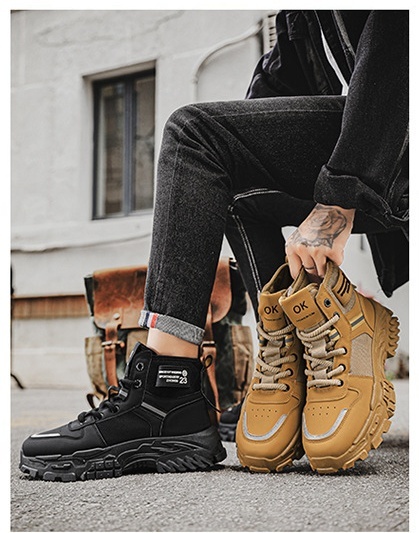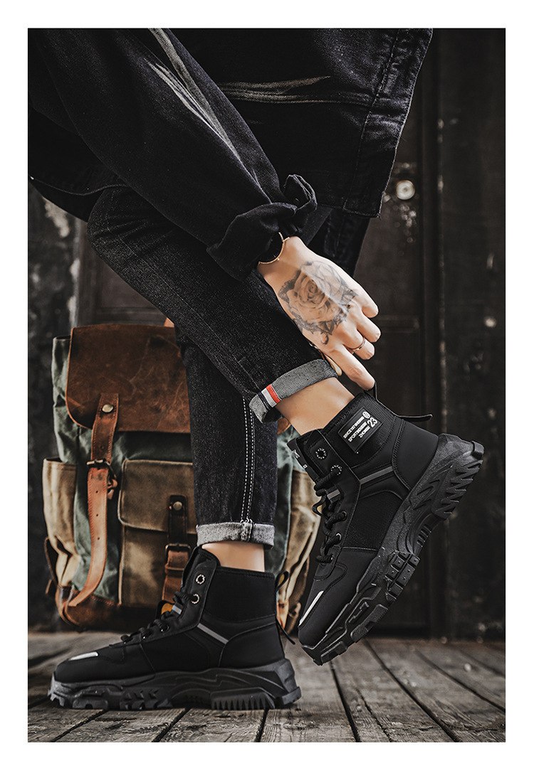 マーチンブーツメンズシューズ秋の新作レトロハイギャングシューズメンズトレンド百合すべり止め厚底スニーカー Y031
