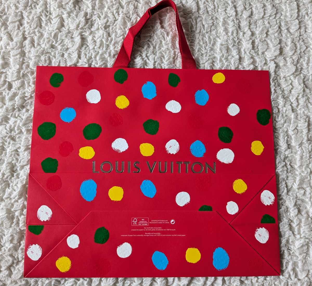 LOUIS VUITTON ルイヴィトン 草間彌生 紙袋 ショッパー 赤 未使用 2023年限定 草間彌生とルイヴィトンのコラボのドット柄のショッパーです。 未使用です。 サイズ:縦34cm 横40cm マチ16cm |