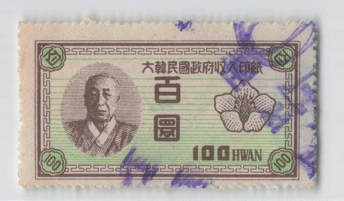 *韓国収入印紙 100 ウォン(1953) [S4408] 切手、北朝鮮