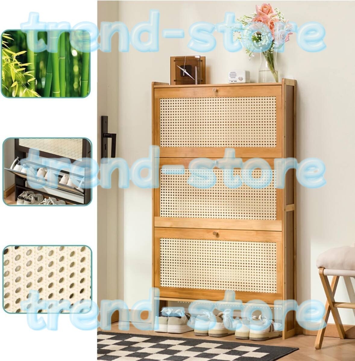 下駄箱 竹製 大容量 靴置き シューズラック 70x17x120CM 薄型 フラップ シューズボックス シューズラック 省スペース 靴箱 原色