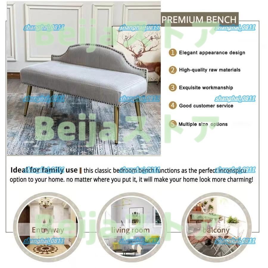 背もたれ付きベッド ベンチの豪華なエンド ベルベット布張りのベッドルーム ベンチ ダイニング ベンチ モダンなオットマン ベンチ シート
