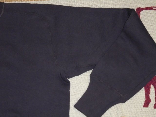 1940年代頃に作られたために縫製は二本針が主流で、美しい曲線は着こむごとに二本針のアタリとなって顕著にあらわれます。吊り編みの生地、丸胴のボディ、丸編みの胴リブ、手口リブと相まって、着用にストレスを感じさせないフリーダムスリーブの両Vスウェットです。