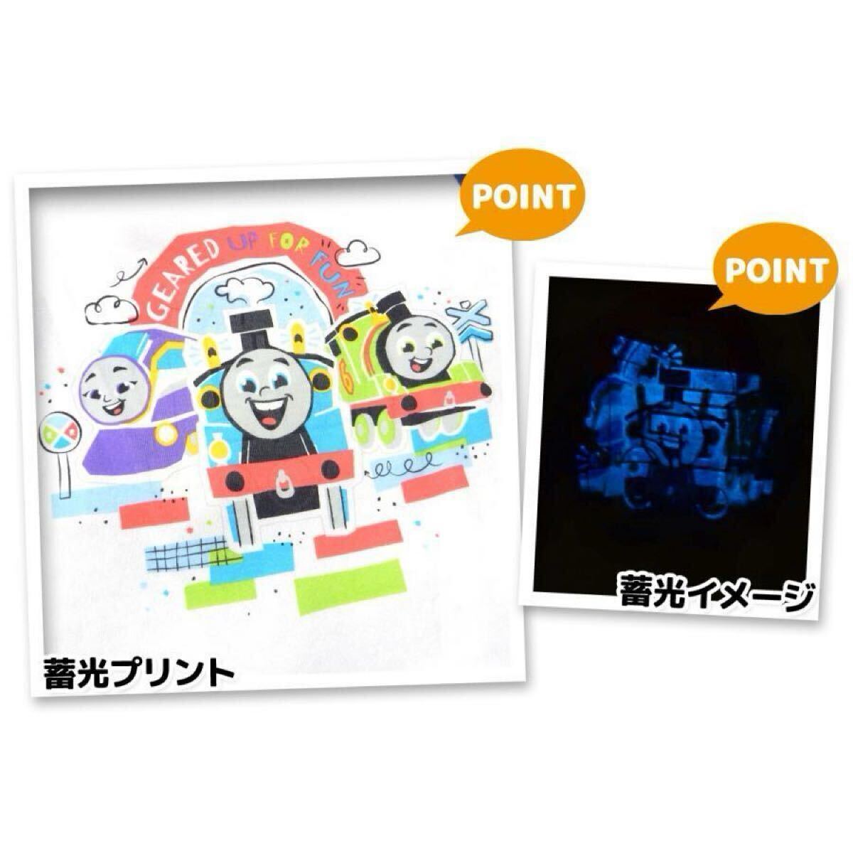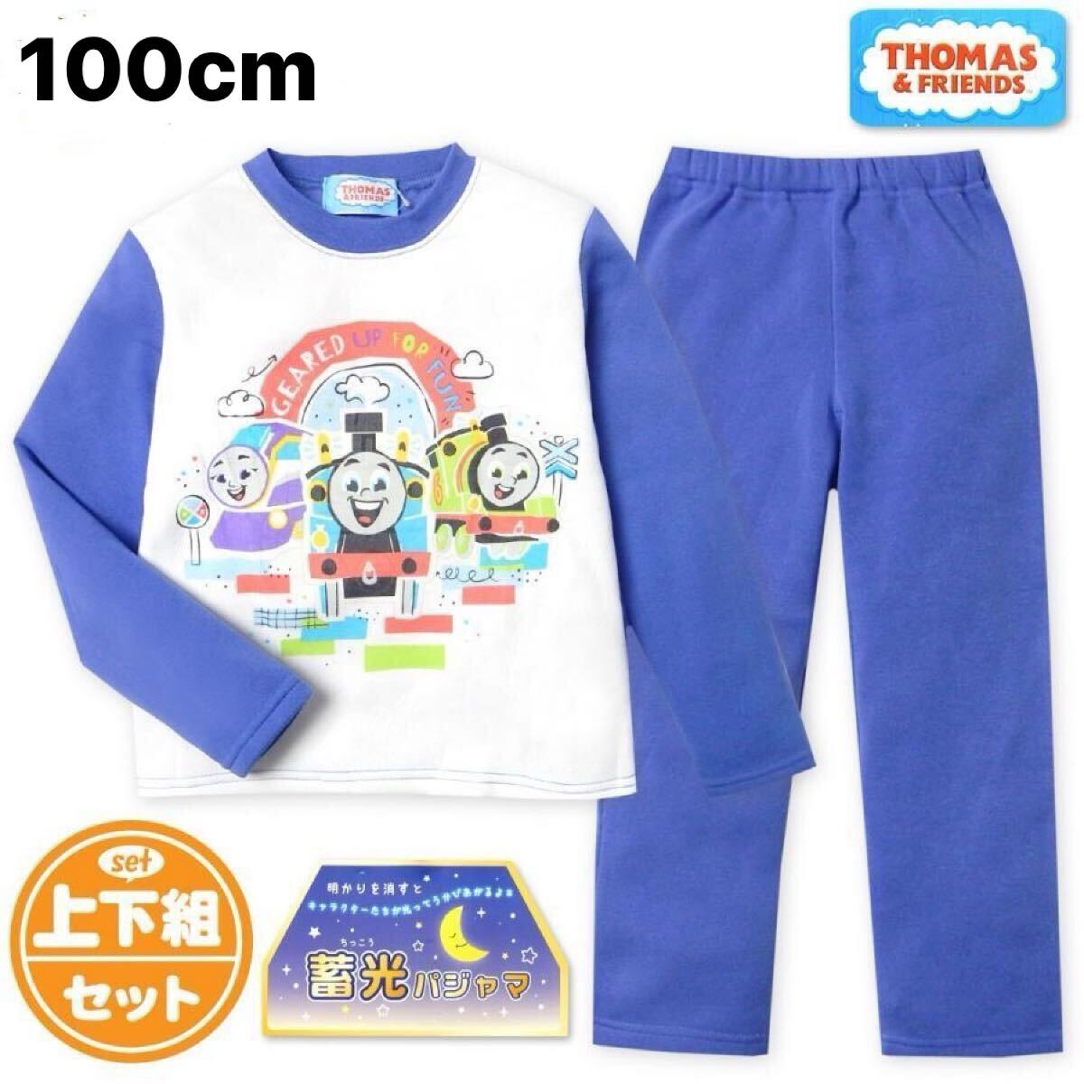新品63551 機関車トーマス 100cm ブルー ボーイズ蓄光長袖裏起毛パジャマ 光るパジャマ かぶり裏シャギーパジャマ秋冬ルームウエア 男子
