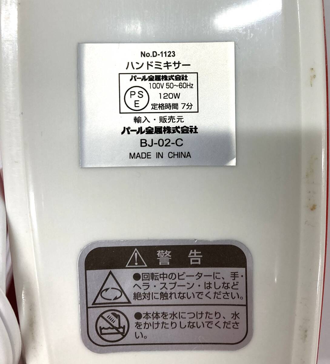 | #8386 パール金属 ミラクルス 電動ハンドミキサー D-1123 レッド 泡立て器 生クリーム お菓子作り 動作確認済 | ||