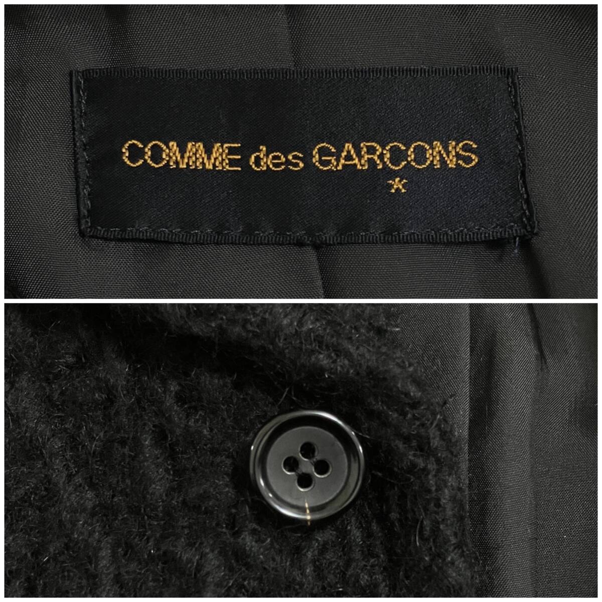 80s 90s COMME des GARCONS カッティング ボア ニット コート ブラック
