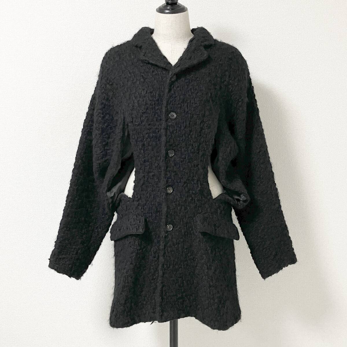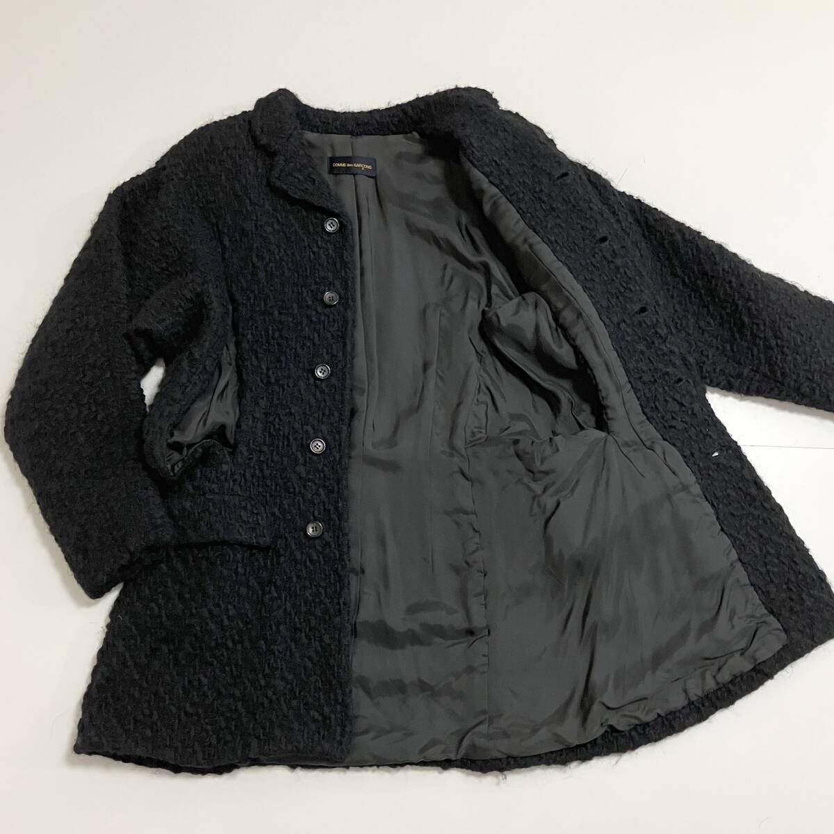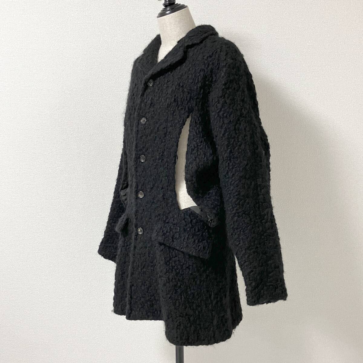 初期 80s 90s COMME des GARCONS カッティング ボア ニット コート ブラック 黒 コムデギャルソン ジャケット VINTAGE archive 4110396