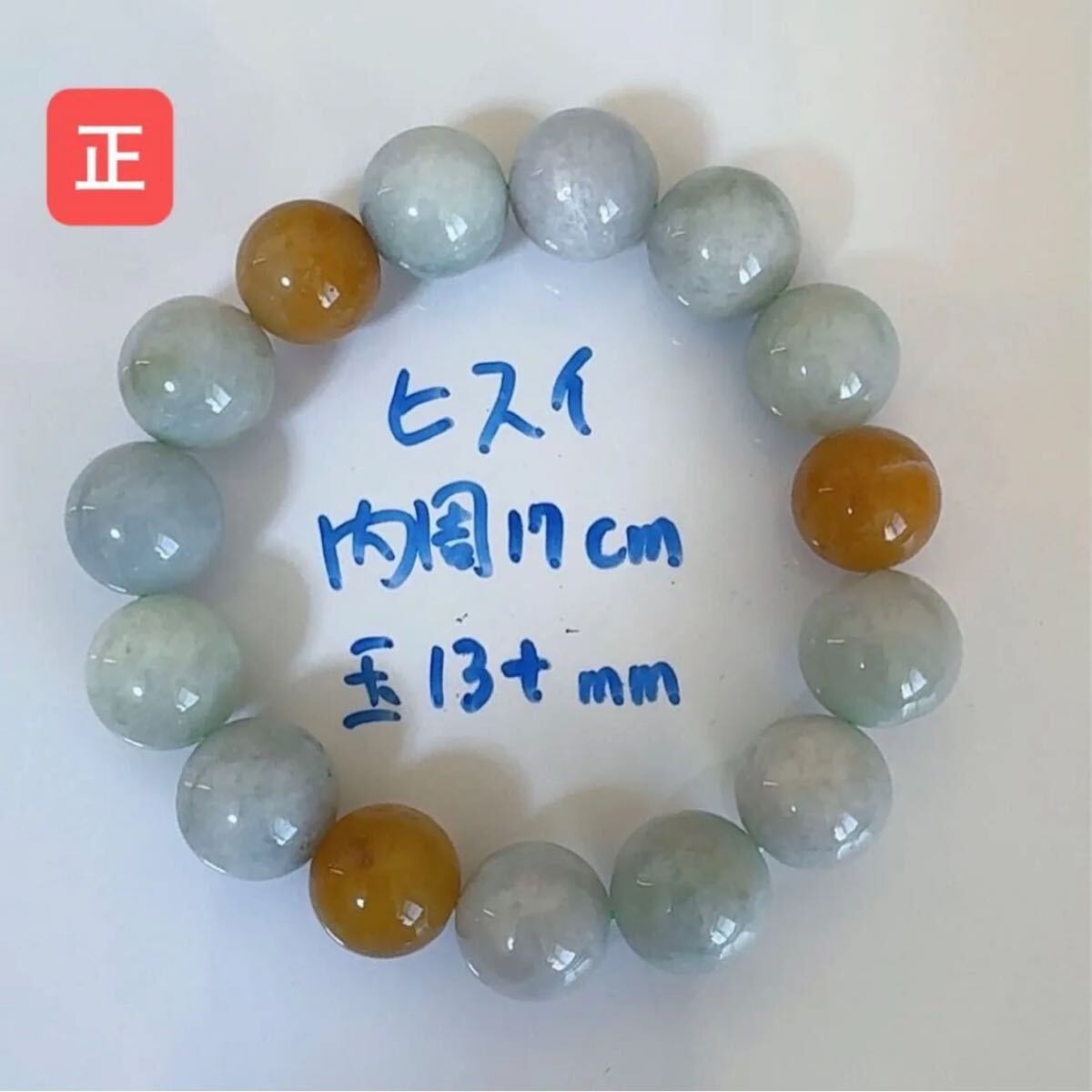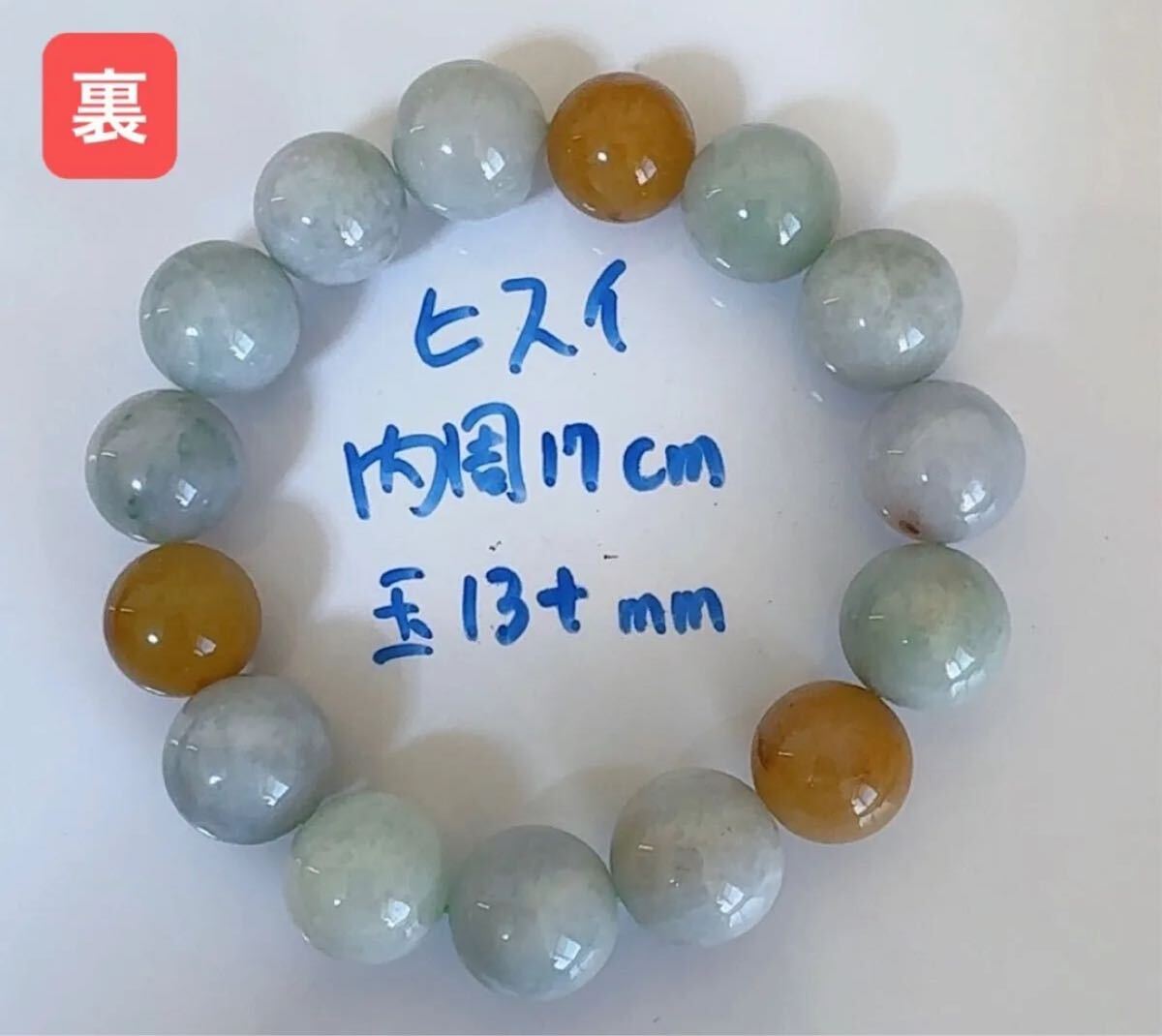 SS-011 天然本翡翠《本物保証》翡翠ブレスレット17cm 玉13.5mm 一点物 魔除け 昇進 成功 風水 金運 財運 幸運 幸福 縁起