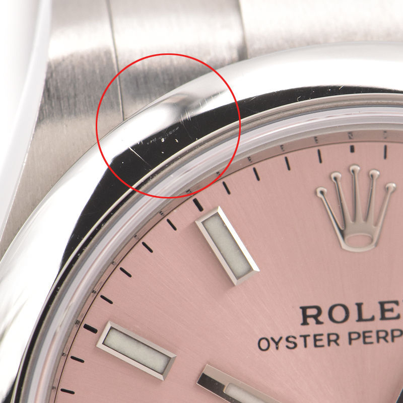 | 状態 | ランクA ベゼルに光の反射で見える極微細なスレと極微細なキズ、ケースサイドに光の反射で見える極微細なスレキズと極微細な点キズ、ブレスレットとバックルの内部に光の反射で見える極微細なスレ、バックルサイドに光の反射で見える極微細なスレキズがあり、裏蓋に微細なスレと微細なスレキズがございます。 |