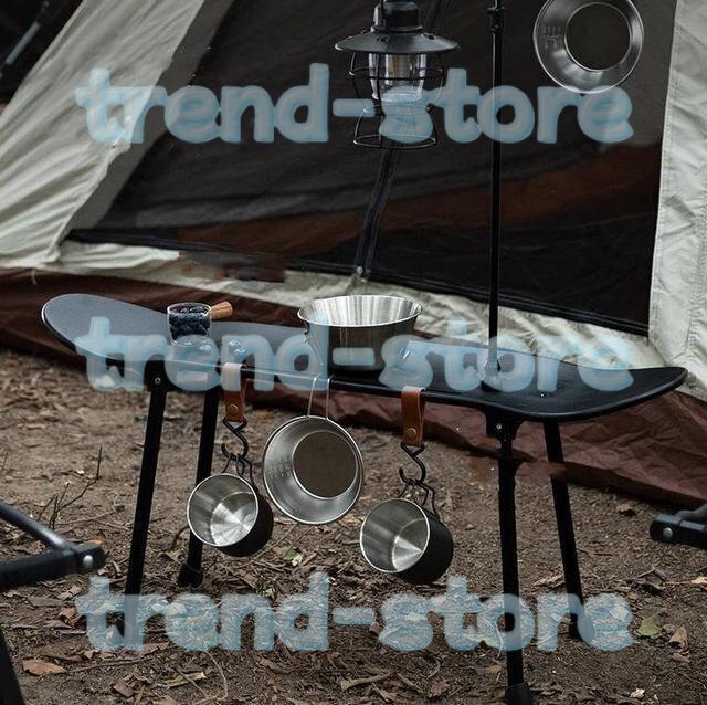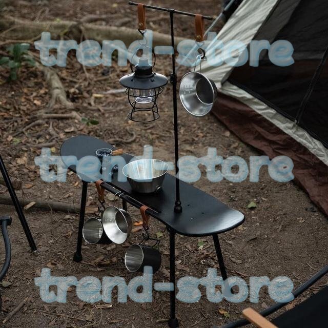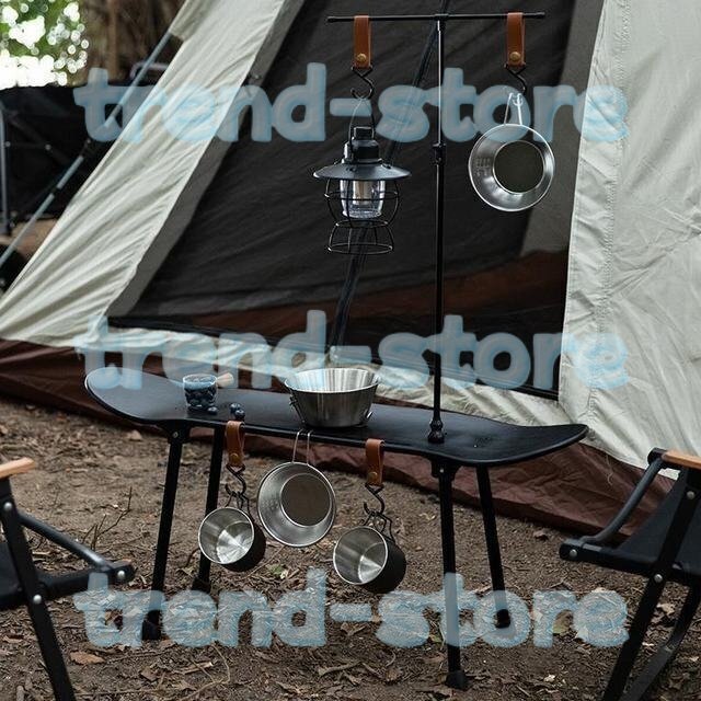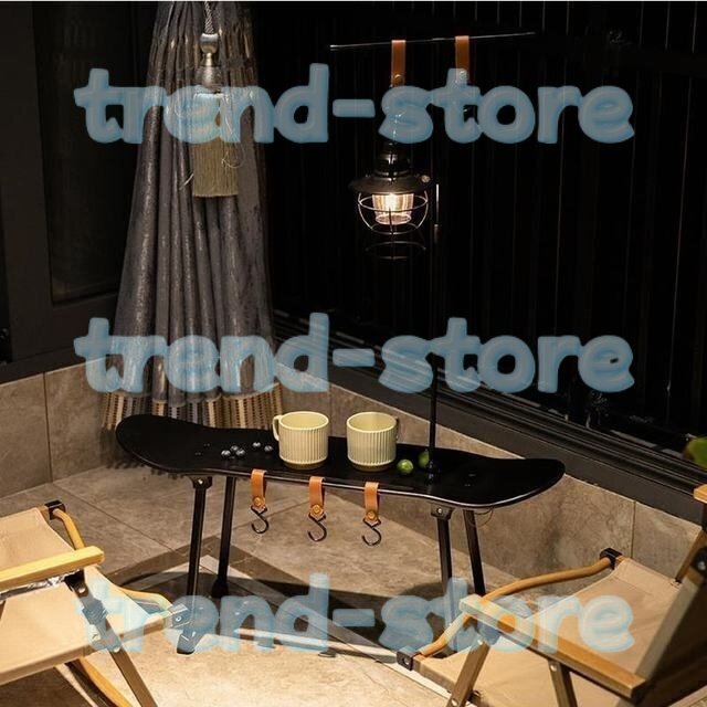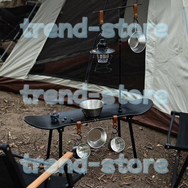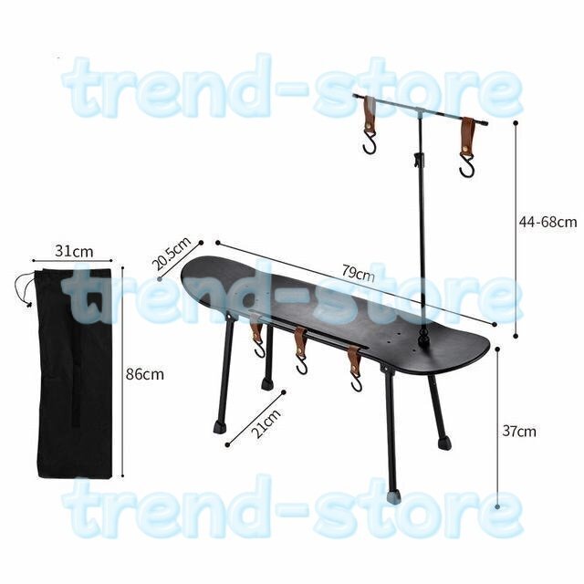 スケボーテーブル スケートボード キャンプ サイドテーブル ラック ランタンポール 折りたたみ式 フック5個 収納袋付き ブラック