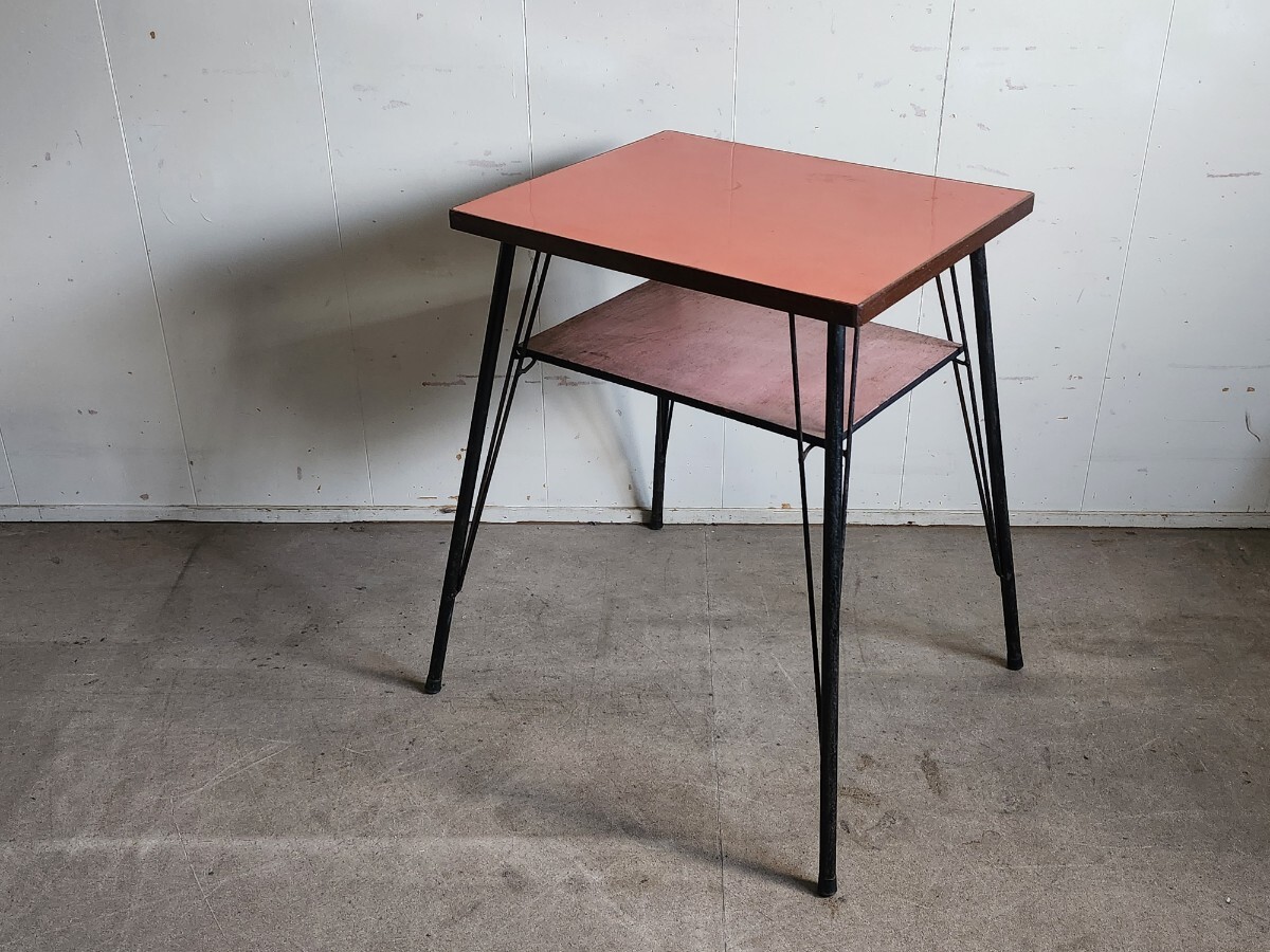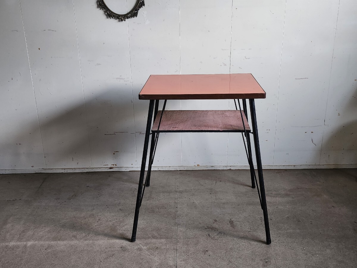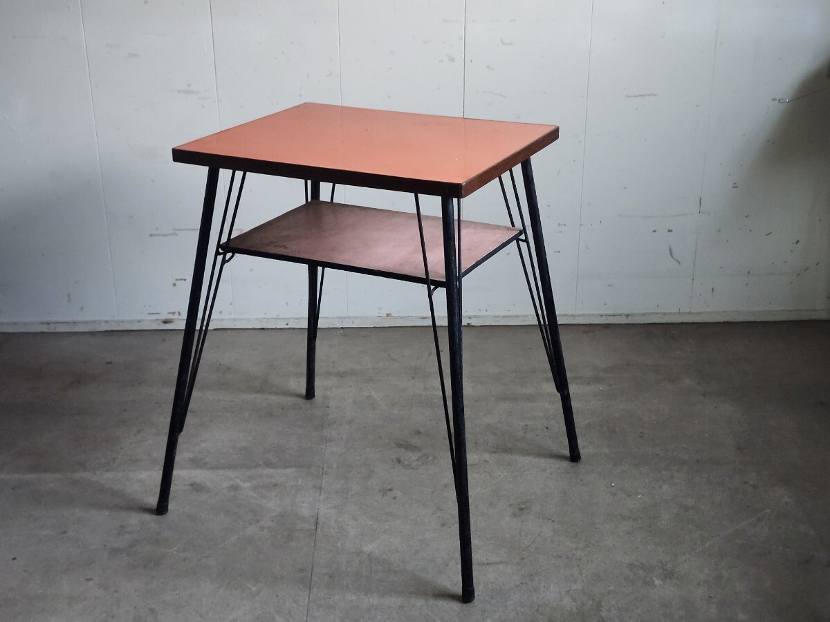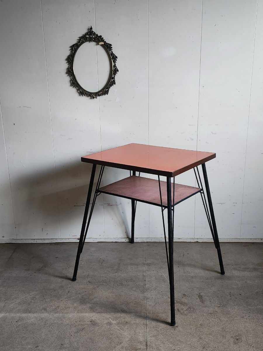 めずらしいデザインの小ぶりな鉄足テーブルです。