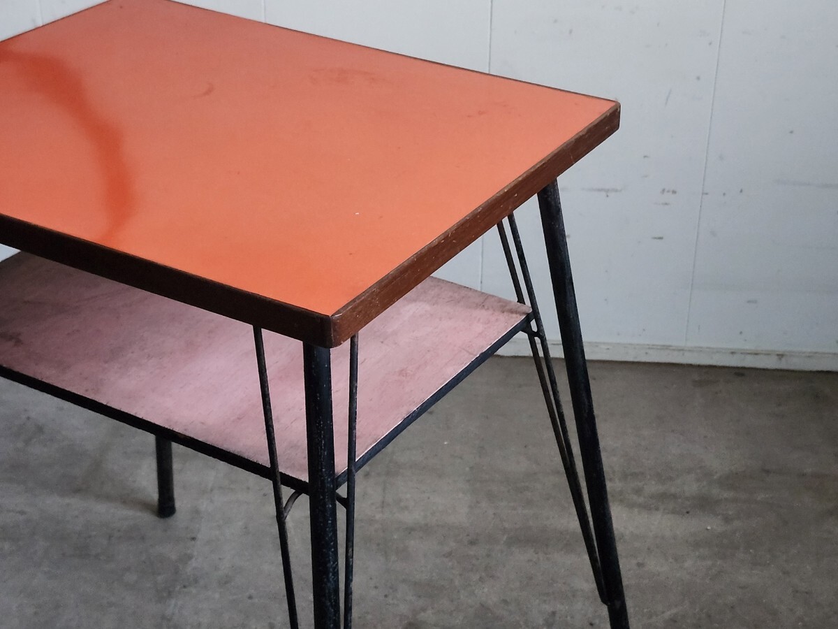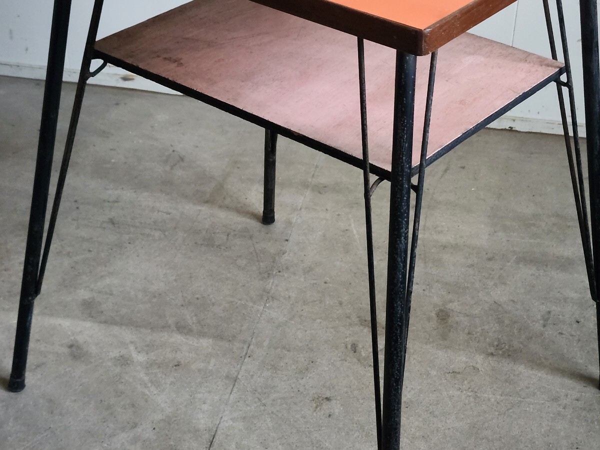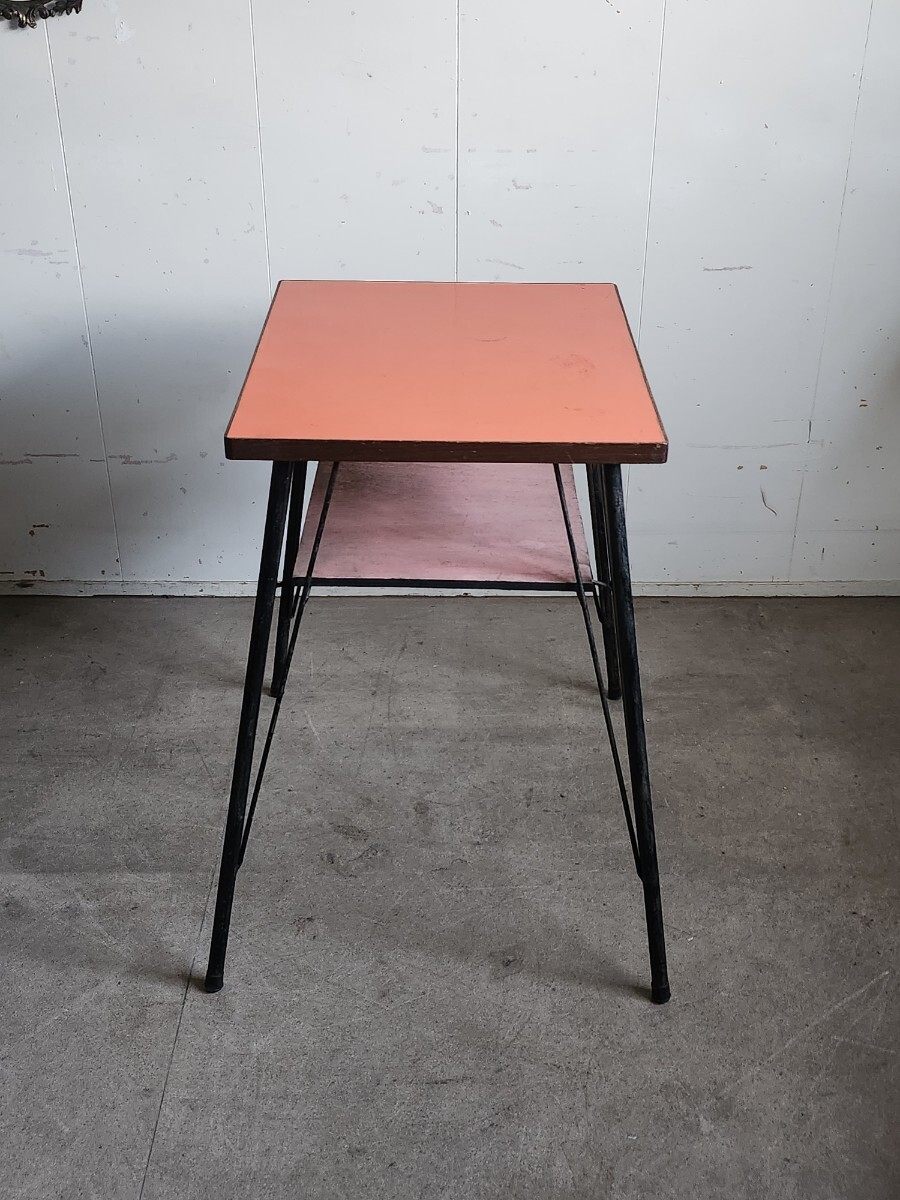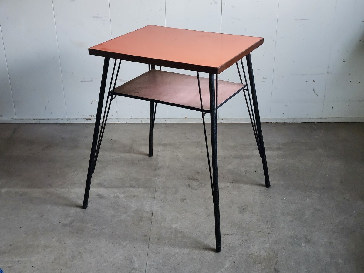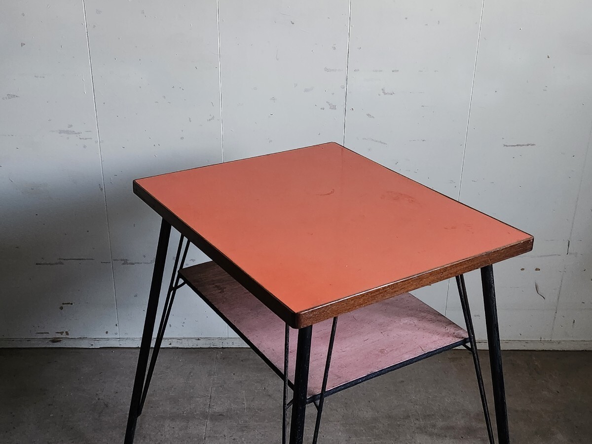 めずらしいデザインの小ぶりな鉄足テーブルです。