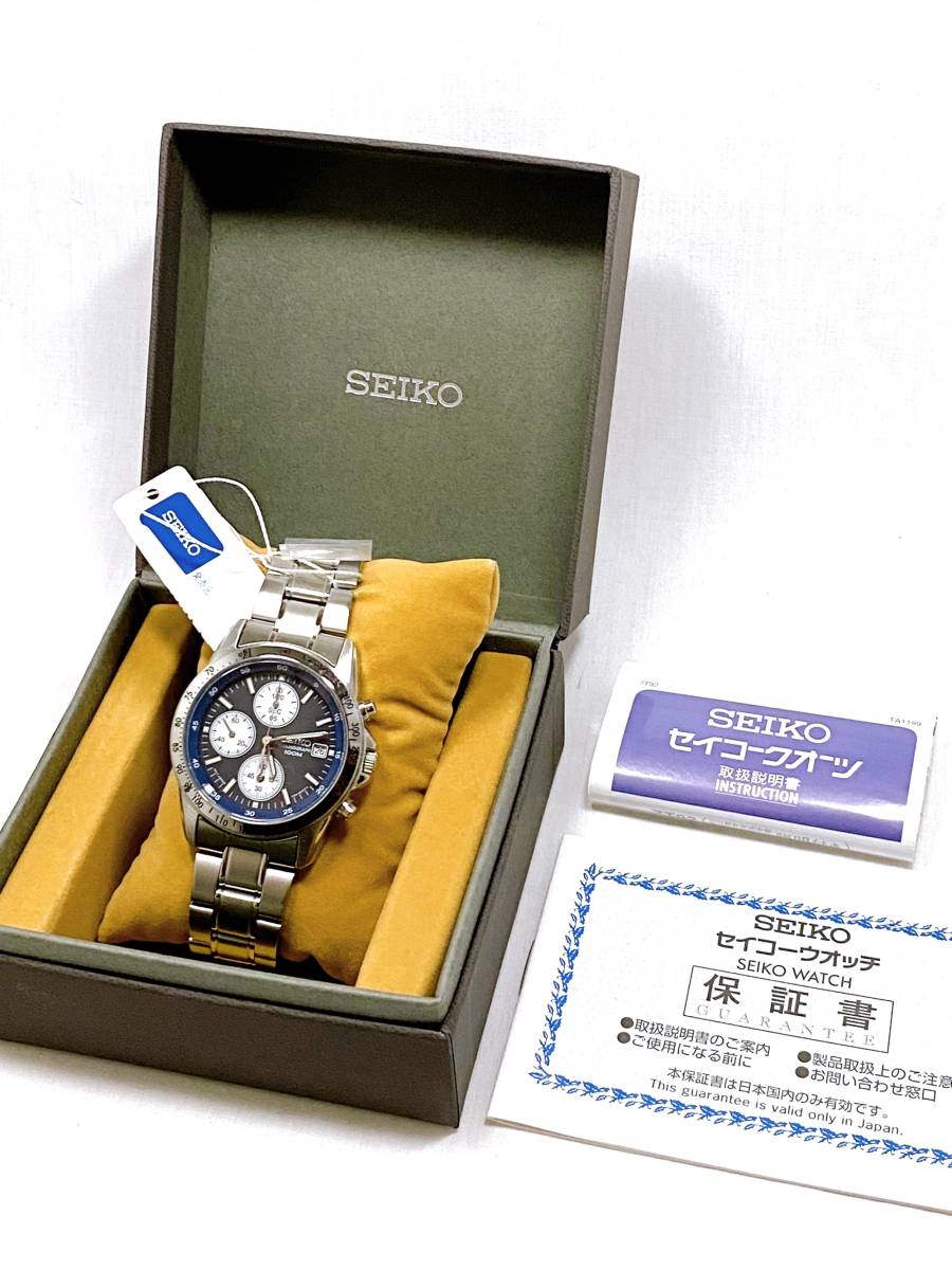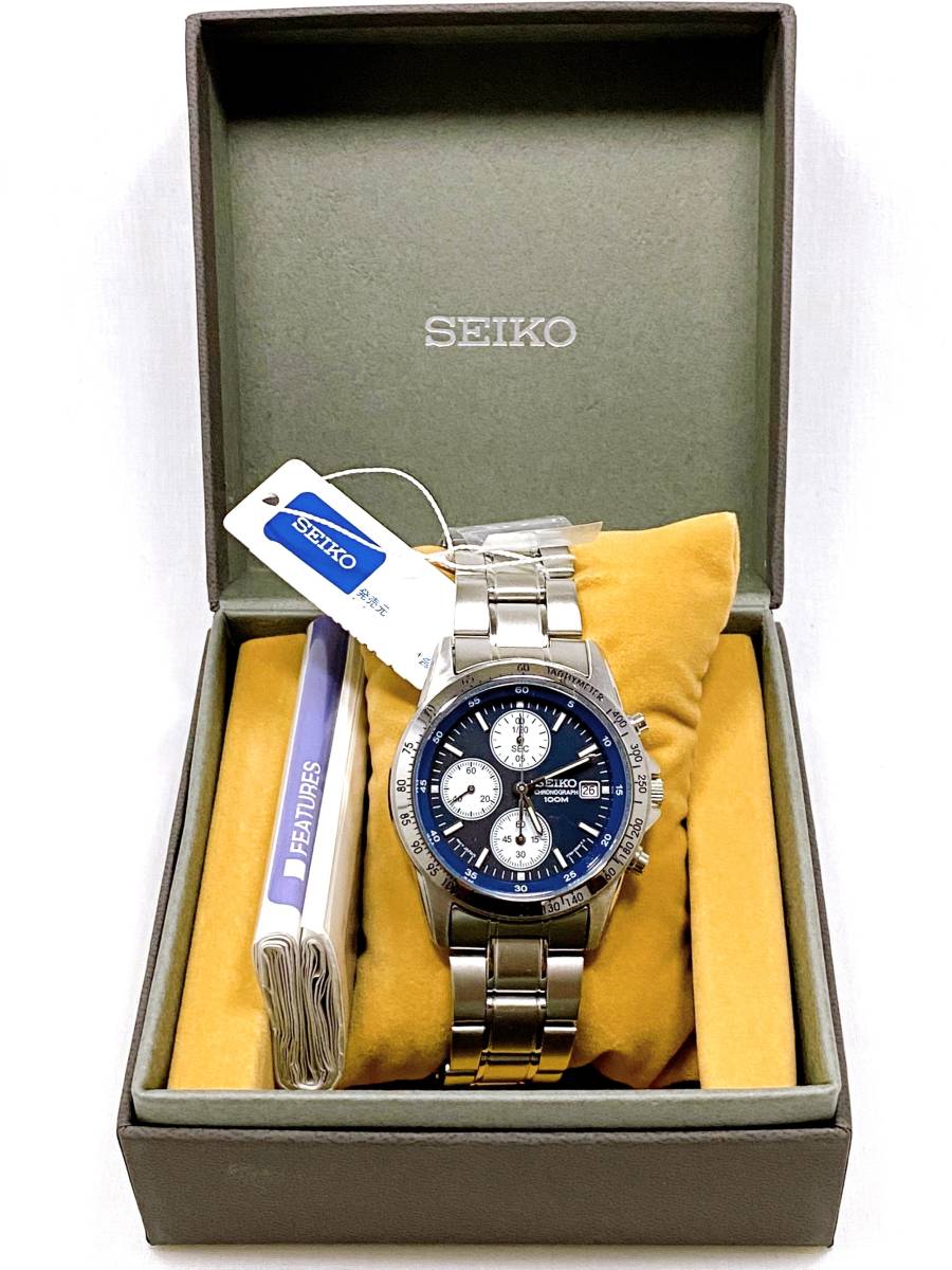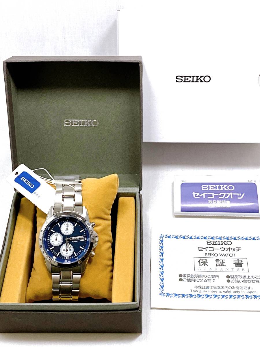 送料無料【新品 未使用】腕時計 人気 SEIKO(セイコー) メンズ クロノグラフ 防水 保証書付 シンプル ネイビー ブルー クオーツ シルバー