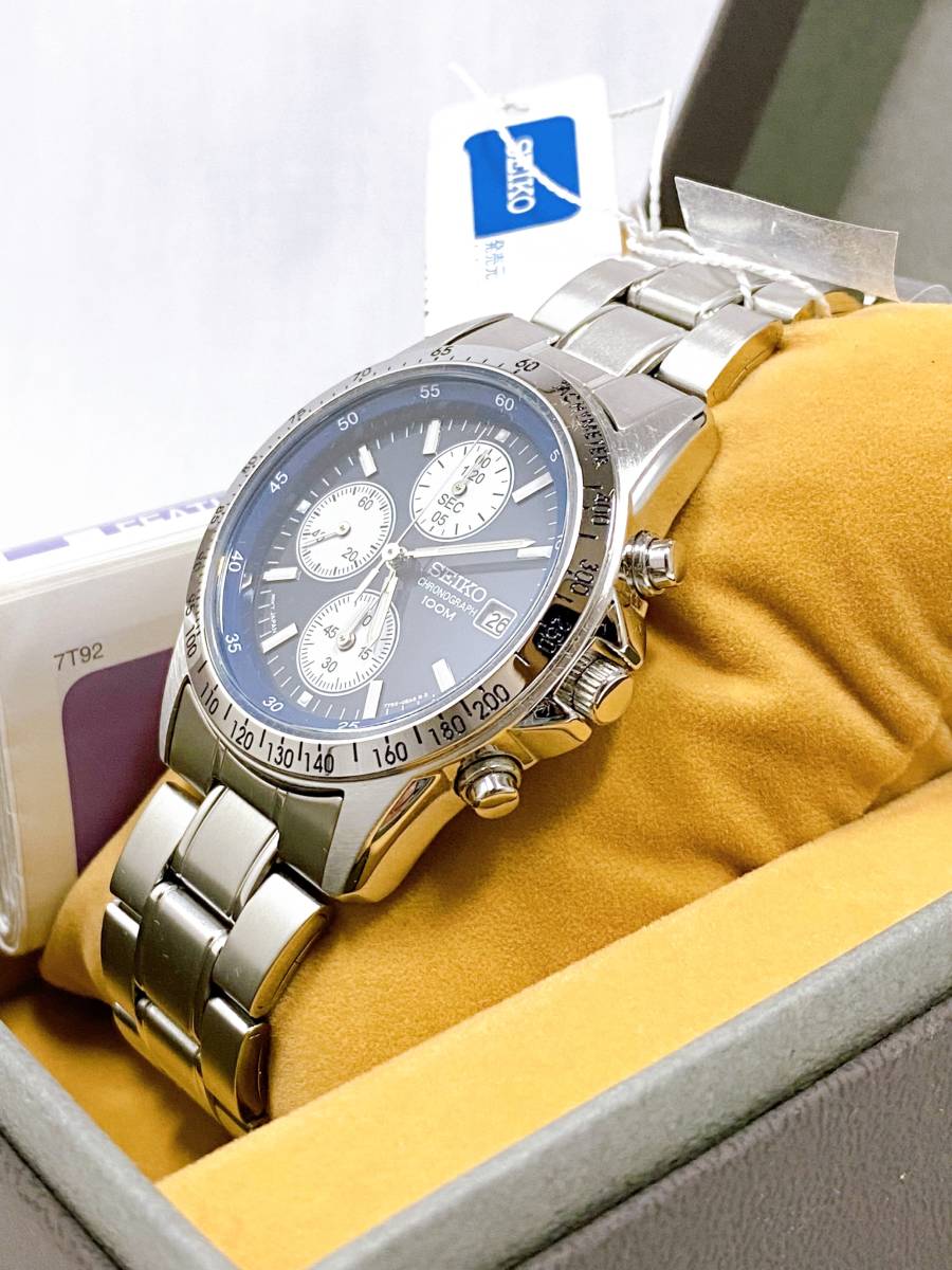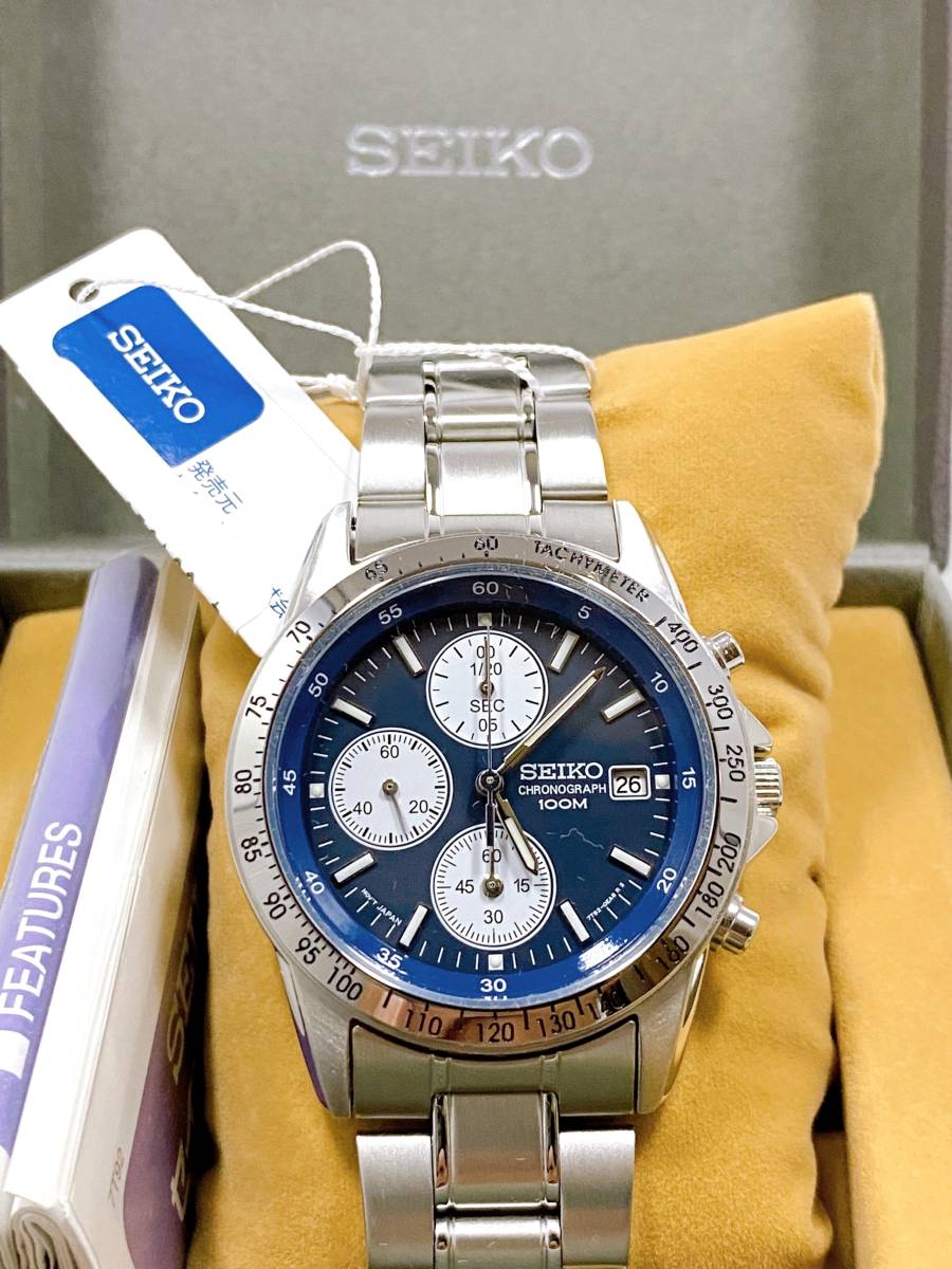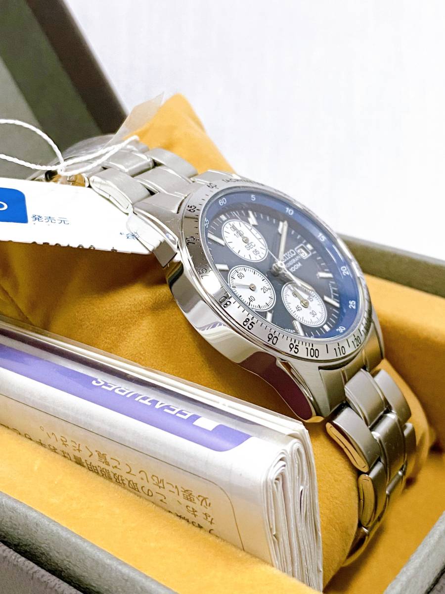 送料無料【新品 未使用】腕時計 人気 SEIKO(セイコー) メンズ クロノグラフ 防水 保証書付 シンプル ネイビー ブルー クオーツ シルバー