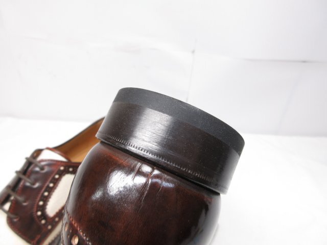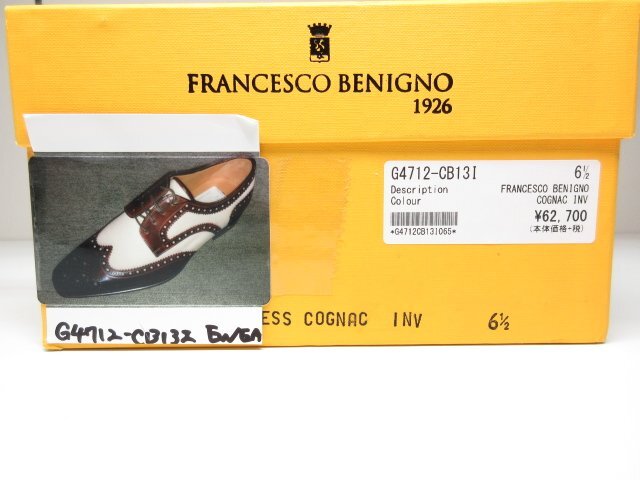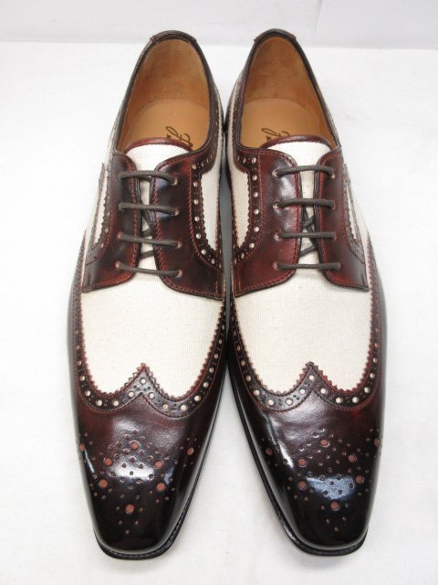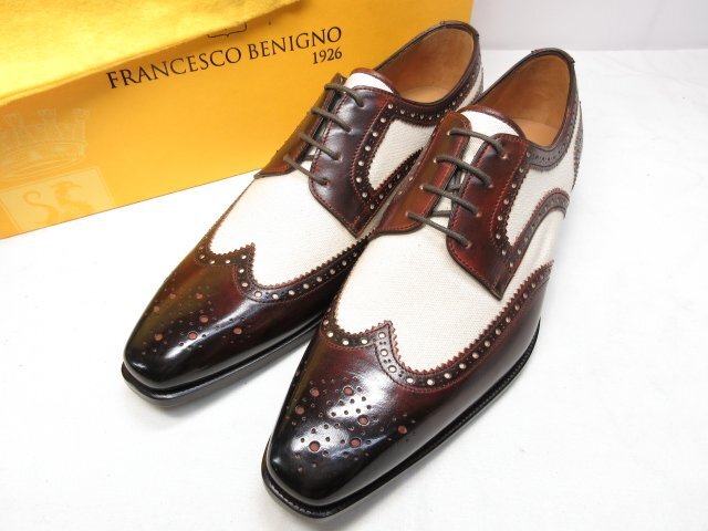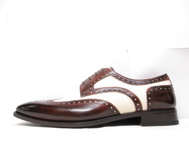 未使用品 【フランチェスコベニーニョ FRANCESCO BENIGNO】 G4712 レザー×キャンバス メダリオン 靴 (メンズ) 6.5 茶×白系 □18BEN185□