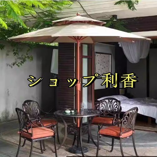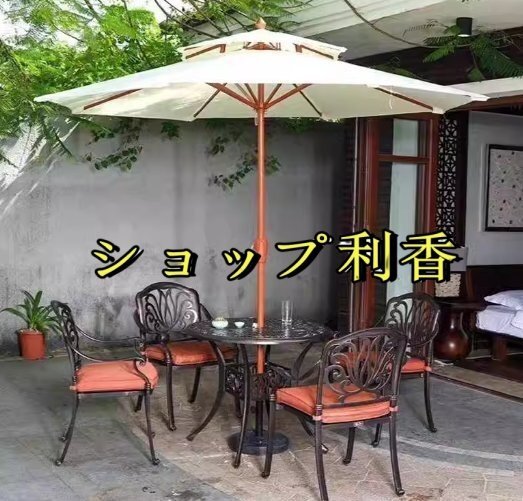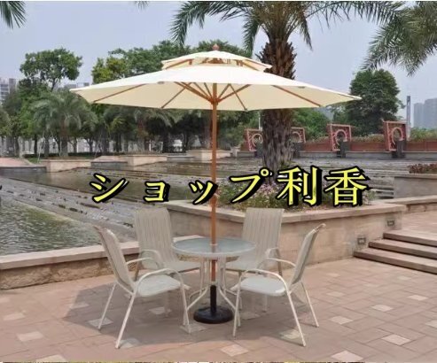 人気推薦 ガーデン パラソル ベージュサンシェードマーケットアンブレラ パラソルUV 50+ 木目調デザインのアルミポール 2.7m F929