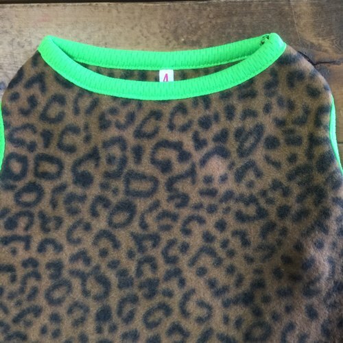 4号★送料無料・ネコポス便★昭和レトロ  緑ふちの豹柄 薄手フリース