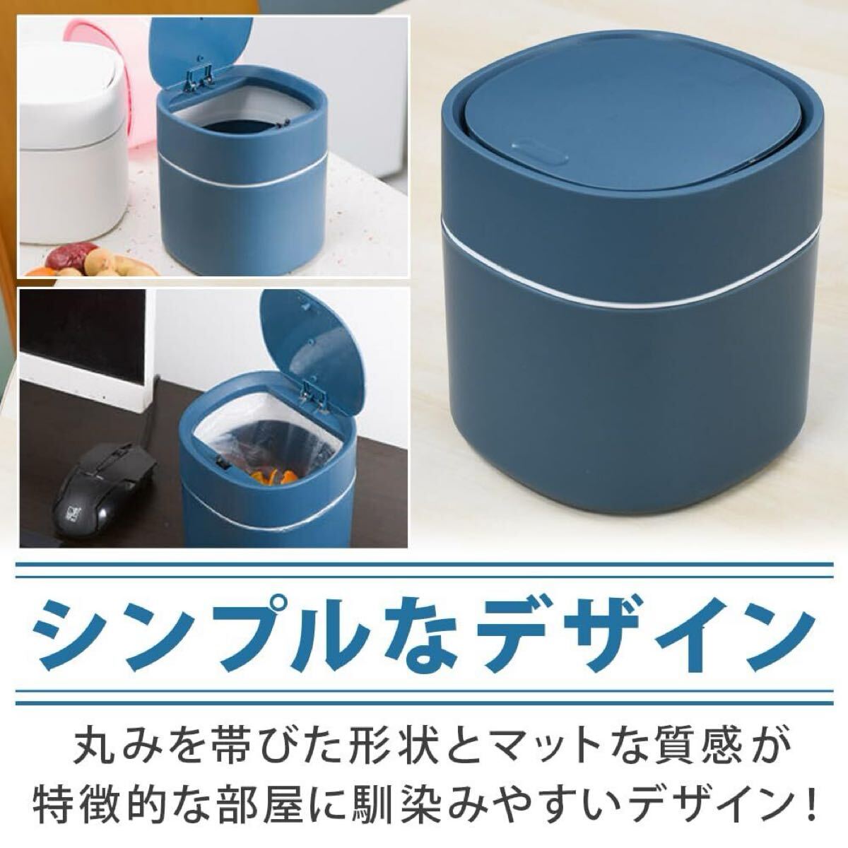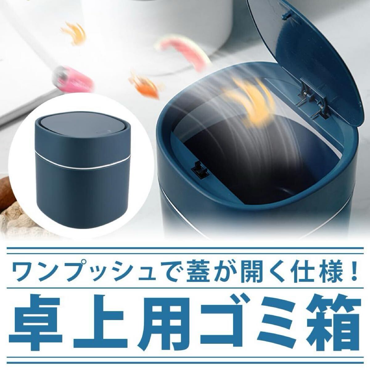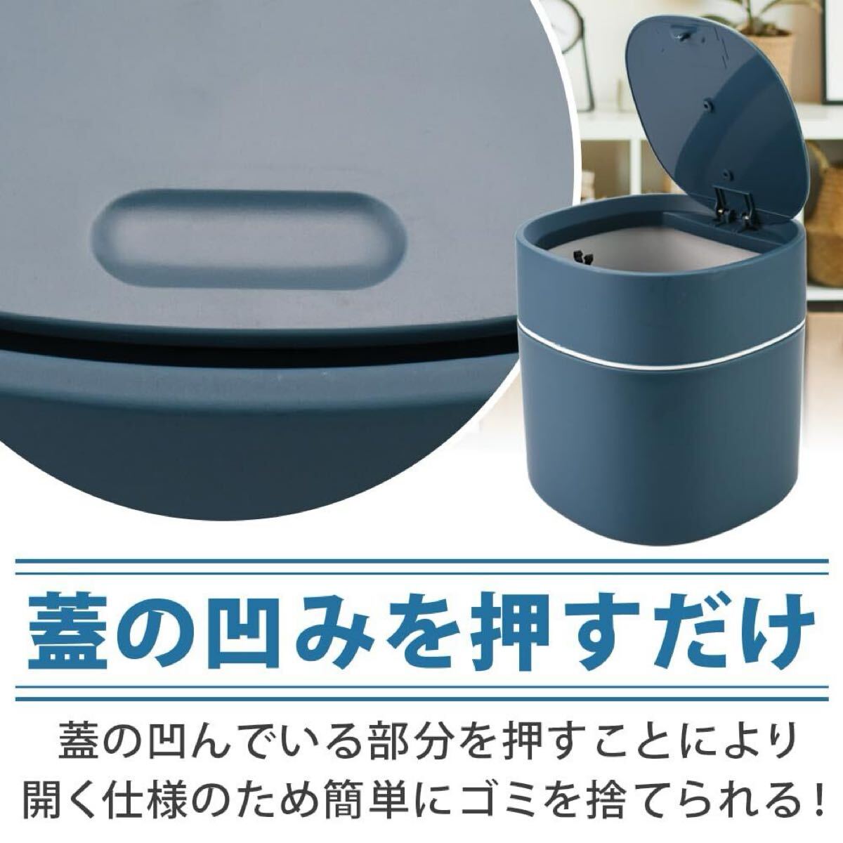 ミニダストボックス 卓上ゴミ箱 小型 蓋付き ワンプッシュ 匂い漏れ防止 洗える デスク キッチン (ブルー)