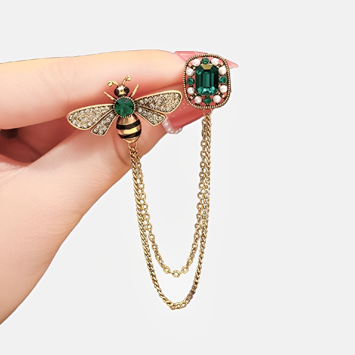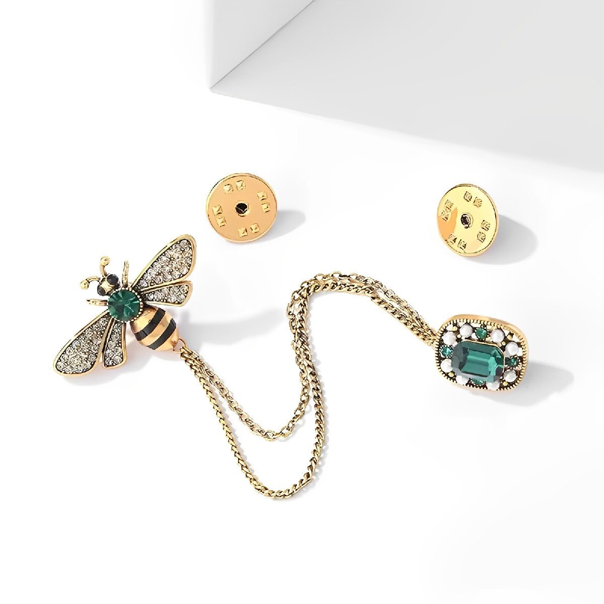 レトロ 蜂 チェーン ピンバッジ ブローチ