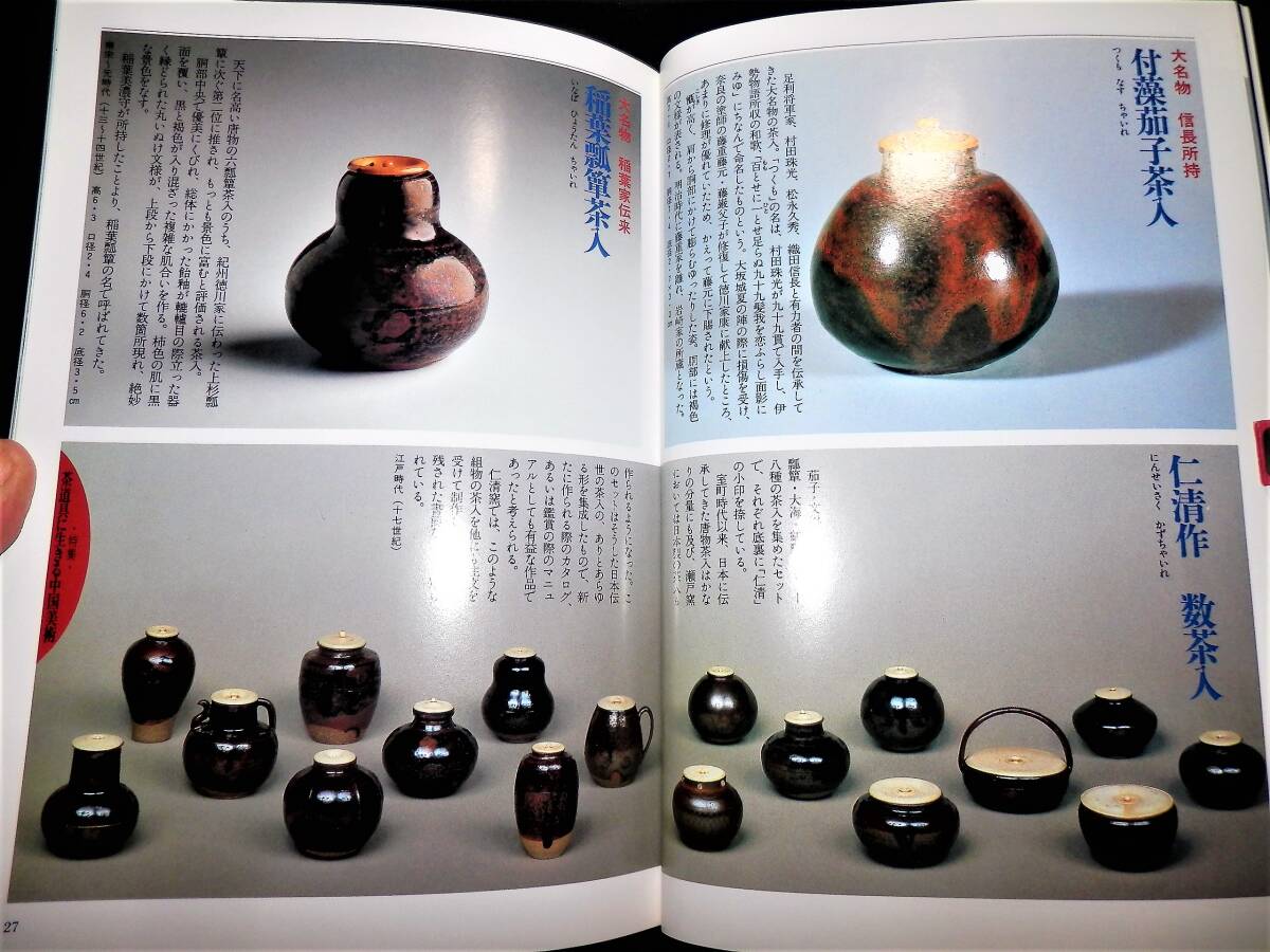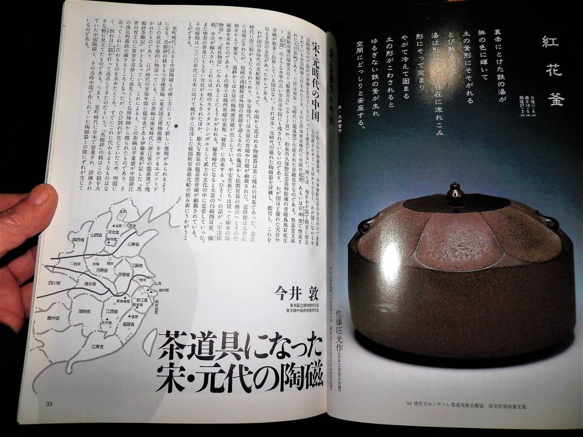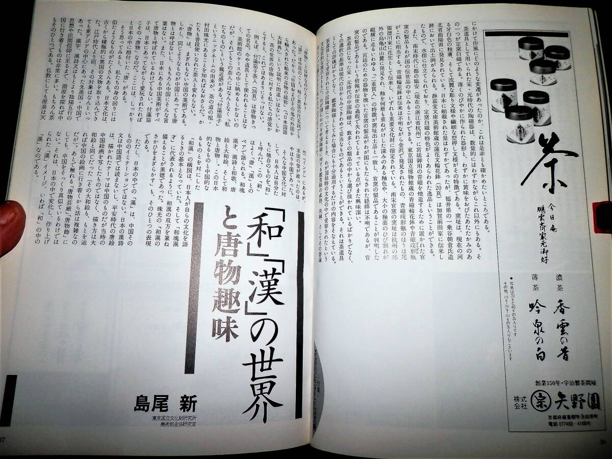 ■■『茶道誌』・・・■■ ■■『なごみ』・・・■■ **”(1994年10月・通巻第178号)”** ―”特集”― ●●『茶道具生きる中国美術』・・・●● ―”静嘉堂美術館・「茶の美術展」・より”― **”(約・37頁) ”** ★茶の湯は日本を代表する伝統文化とされています。 しかしそのルーツが中国にもとめられるように・伝統 の茶道具のなかには・中国あるいは朝鮮半島生れのも のが数多くふくまれ・日本の・「国宝」・「重要文化 財」・となっているものもあります。 わが国において・故国とは異なる審美眼で評価された それらの茶の湯に育まれ・より親しいものとなったか らこそ今に伝世されてきたといえるでしょう。 いつのまにか日本の文化の一となってきた中国舶来の 美術品・いわゆる・「唐物」・に焦点をあてて・それ らを受容してきた茶の湯の本質をみつめてみます。 ―”小特集”― ●●『香合の工夫』・・・●● ―”趣向の茶の湯にみる小さな冒険心”― **”(6頁・カラー) ”** **”監修・文―三田佳子”** ■発行日=平成6年10月1日。 ■発行所=株式会社・淡交社。 ■サイズ=18×25.5cm。 ■定価=800円。 ■状態。 ●表紙に・多少の・キズ・ヤケが有ります。 ●本誌内に・多少の・ヤケが見えますが ●大きなダメージは・無く ●年代的には・良い状態に思います。 ◆◆注意・・・◆◆ ★表紙開き側縦に、折れ跡・(読みぐせ)・が 有りますので御理解下さい。 ★発行日より・経年を経て下ります。 コンディションに係らず・古書で有る事を 充分に御理解の上・御入札下さい。 ★神経質な方は、入札をご辞退下さい・!! ●全・128頁・・・!! ●特集の・・・!! ◆「茶道具生きる中国美術」・は・約39頁。 ●小特集・「香合の工夫」・・・!! ―”(6頁)”― **”監修・文―三田佳子”** ★香合という小さな器には・一つの世界がある。 蓋物で・中に香木や練香を入れて使う掌にのるほど小 さいこの器は・茶の湯の中では炭点前に香を入れて・ まっさきに姿をあらわす。 炭手前のないときは・紙釜敷にのせて床の間に飾り・ 客に見てもらう。 客もまた・その香合から・その日のお茶の趣向を感じ 取るのである。 香合はかたちが何かの意味をもっている。 型物香合では大亀や・橋杭・辻堂・開扇などがあるが ・作家や職人の自由な発想で・さまざまのかたちが作 られている。 れが茶の中で趣向に使われると・ぐっと大きな存在と して生きてくるのである。 ●「香合は・強力助っ人」・・・● ―”茶会の趣向を考える”― ◆香合―砧・表完作。 ◆水指―山本雄一作。 ◆茶碗―清閑寺窯・杉田祥平作。 ―”人生は旅路・「風炉」・名残の茶”― ◆掛物―弧篷庵・卓厳筆。 ◆花入―佐藤光夫作。 ◆香合―砧・表完作。 ―”人生は旅路・「炉」・豊の秋”― ◆香合―宝船・杉田祥平作。 ◆茶入―肩衝・寺田康雄作。 ◆茶碗―丹波刷毛目・石田陶春作。 ●「見立ての愉しみ」・・・● ―”香合こそ見立てて”― ★茶道具は見立てで作るのが楽しい。 ことに・香合は身近にある蓋のある器が見立てられる。 古い香合というのも・印肉入れであったり・大名姫の 化粧道具であったりしたものを茶人が茶道具として見 立てたもの。 神社のからけの盃を二つ合わせても香合になるし・楊 枝入れでも香合になる。 それには・見立てる目と見立てる感性が必要だが・先 ず香合になるかなという眼で見ること。 ◆1・大中小と三つ入れ子になっている有馬の菓子 を入れる籠。携帯用なので野遊びに。 ◆2・タイのおみやげ・仏塔である。 仏事にもよし。旅路を表現してもよい。 ◆3・ヨーロッパのみやげ・若い人たちの茶会でモ ダンに。 ◆4・李朝の小壺。 蓋をつけて香合に。 火箸が入らないので・左手でうつむけて香を 火中に落とす。 ◆5・安南の小さな器。 すでに先人の見立てで香合に作られていた。 ◆6・宇治橋の古材。 神事の茶に使える。 古材には法隆寺や東大寺など・寺のものが多 くあって・仏事や歴史的なことの表現に。 ◆7・桜かば。 秋田の角屋へ行ったときに求めたもの。 桜なので雪月花の一つに使っても。 ◆8・琴爪入れ。 昔から琴爪入れは香合に使われてきた。 寸法の良いのが手に入ったので・香合の仲間 入りをさせた。 ◆9・あわび貝を細工したもの。 ●蒐集・資料などの・参考に・・・!! ●探されていた方は・この機会に・・・!! ●以下・詳細をご覧ください・・・!! ◆掲載案内は・抜粋し掲載して下ります。 ◆掲載内容は・Q&Aより・問い合わせ下さい。 ◆数字記載は目視です・間違いは御容赦下さい。 ◆掲載を抜粋紹介し・「タイトル」・と致します。 ●●●●●●●●●●●●●●●●●●●●●●●●●●● ◆◆◆◆◆◆◆◆◆◆◆◆◆◆◆◆◆◆◆◆◆◆◆◆◆◆◆ ―”特集”― ■■『茶道具生きる中国美術』・・・■■ ―”静嘉堂美術館・「茶の美術展」・より”― **”(約・37頁) ”** ◆国宝・曜変天目茶碗。 ●●『鑑賞・天目茶碗』・・・●● **”文―長谷川祥子・(静嘉堂文庫美術館学芸員) 